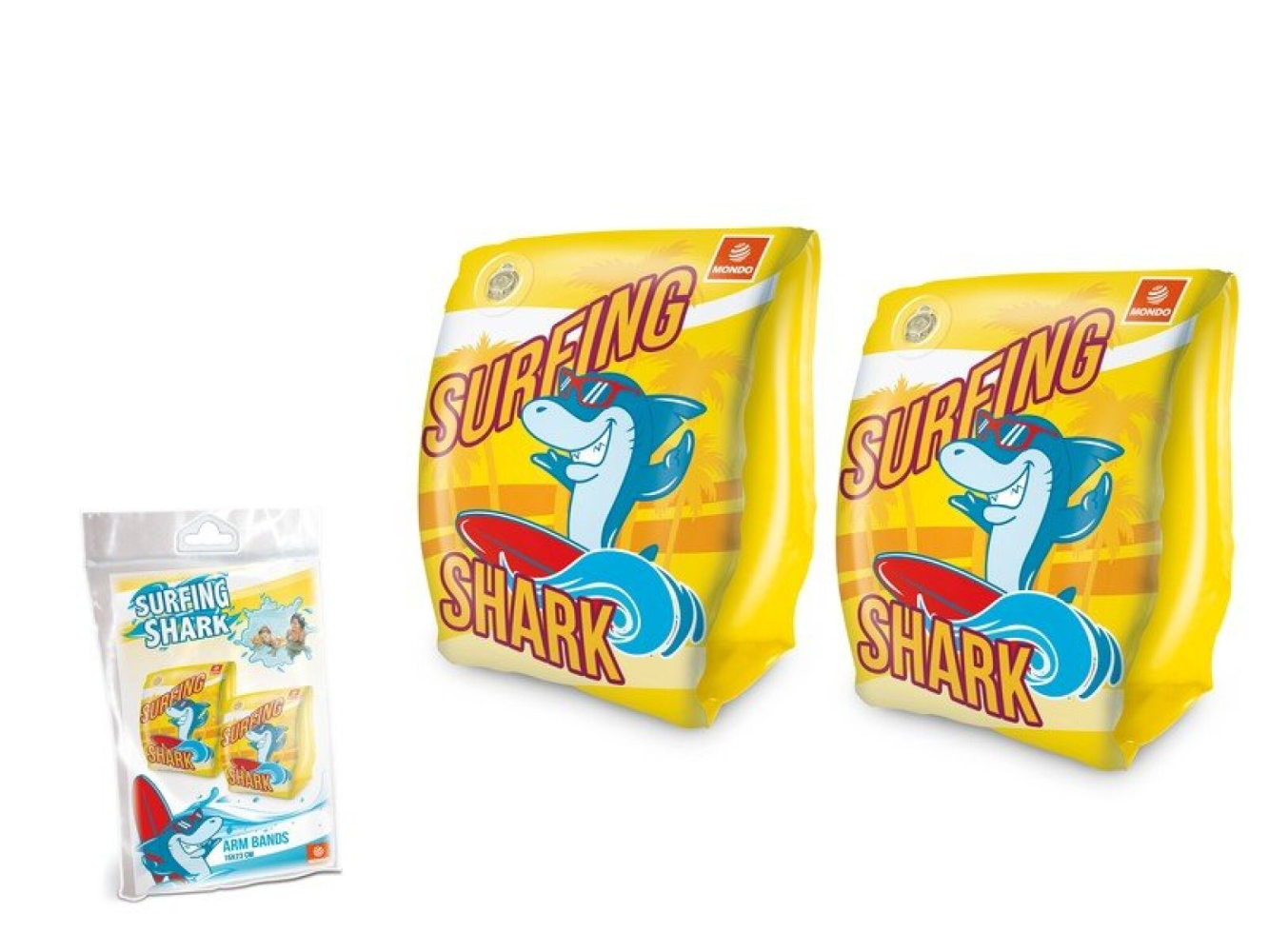 Dětské nafukovací rukávky s motivem SURFING SHARK jsou parádním doplňkem pro první plavání. Rukávky o rozměrech 23 x 15 cm jsou vyrobeny z kvalitního PVC materiálu. S těmito rukávky nebude plavání žádný problém. Vhodné pro děti od 2 let.