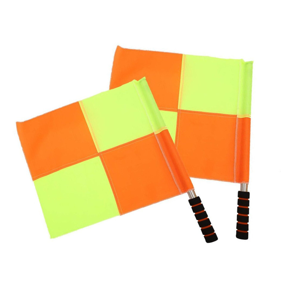Díky zářivým barvám ve čtvercovaném vzoru – oranžová a neonově žlutá – jsou vlajky snadno viditelné z velké vzdálenosti, což usnadňuje rozhodování během zápasu. Vlajky jsou vyrobeny z odolného materiálu Oxford Poly, který je lehký, ale zároveň pevný a odolný vůči povětrnostním vlivům. Rukojeť z ocelové tyče je zakončena měkkým úchopem, který zajišťuje pohodlný úchop i při delším používání.