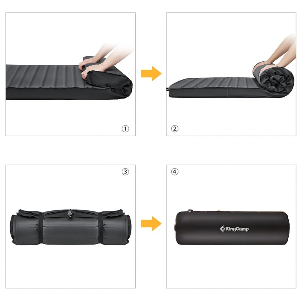 Při jejich návrhu byly upřednostněny izolační vlastnosti před honbou za nejnižší hmotností. Proto je u všech matrací použita hustá polyuretanová pěnová výplň, která má o 30 - 60% vyšší tepelný odpor než odlehčené náplně. Díky této trvanlivé výplni si matrace King Camp zachovávají dobré vlastnosti po řadu let. Speciální ventil typu Boston umožňuje snadné a rychlé vyfouknutí i nafouknutí. Stačí otevřít ventil a kempingová matrace se začne sama plnit vzduchem. Tato kempingová matrace se během minuty zcela nafoukne. Pro dosažení potřebné tvrdosti, můžete matraci přifouknou ústy či pumpou. Nesmí se ovšem přefukovat. Matrace je extrémně odolná proti protržení, opotřebení, je voděodolná a extrémě pohodlná. Prostě ideální pro každou situaci.