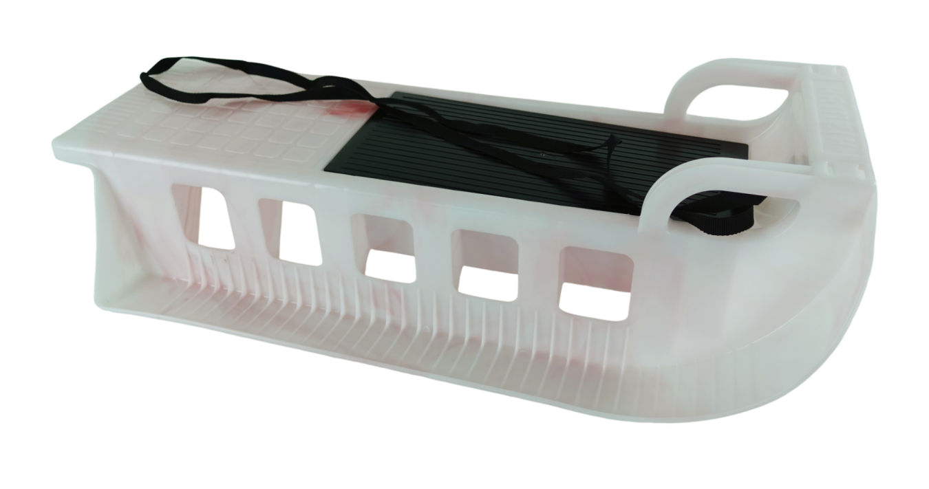 Sáně plastové KAMZÍK s popruhem na tahání a úložným prostorem v sedátku, určené pro rekreační sport - sáňky s jedinečným designem pro ty, kteří netouží po jednolitých produktech sériové výroby.