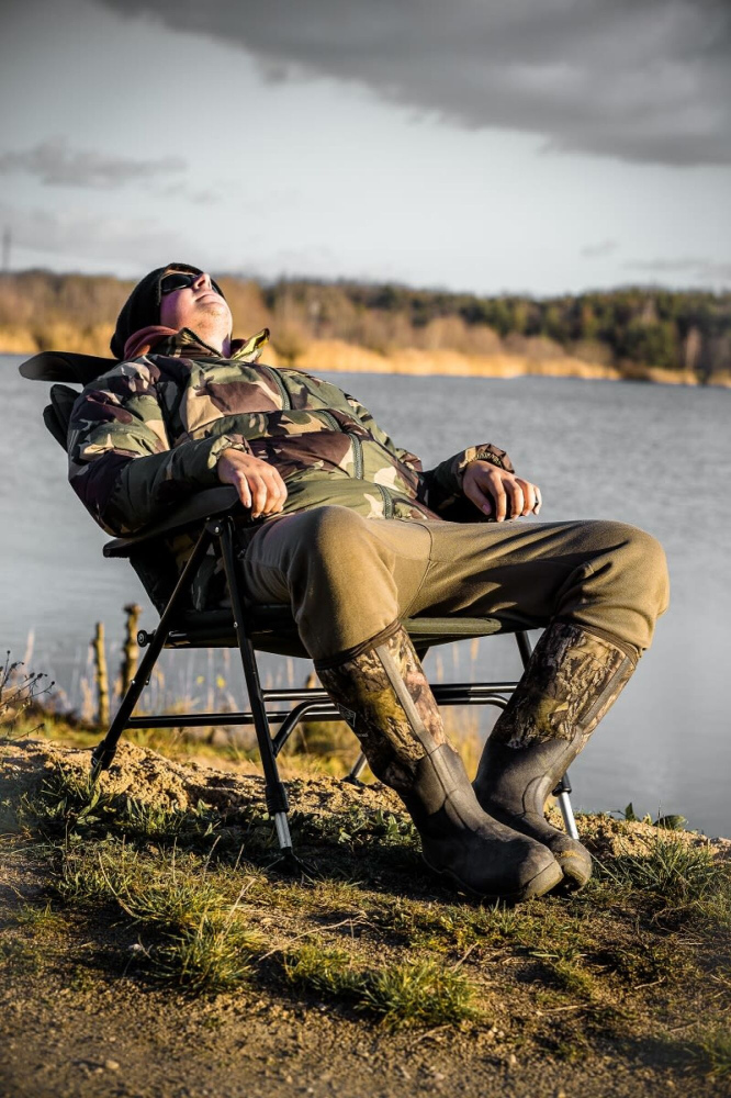 - Polstrování v kombinaci zelené a kamuflážové látky
