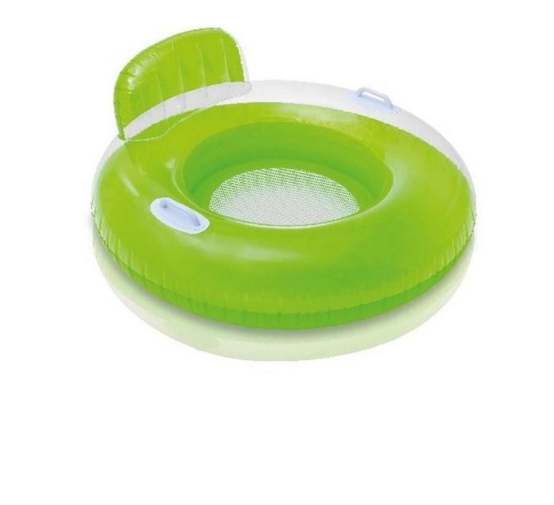 Sedátko nafukovací do vody Intex je nafukovací křesílko, které poskytuje pohodlné lenošení na vodě, přidržovat se můžete dvěma držadly, k dispozici je i pohodlné opěrátko. Křeslo nabízíme ve třech barevných variacích. Součástí balení je záplata na opravy-vhodné pro děti od 4 let.