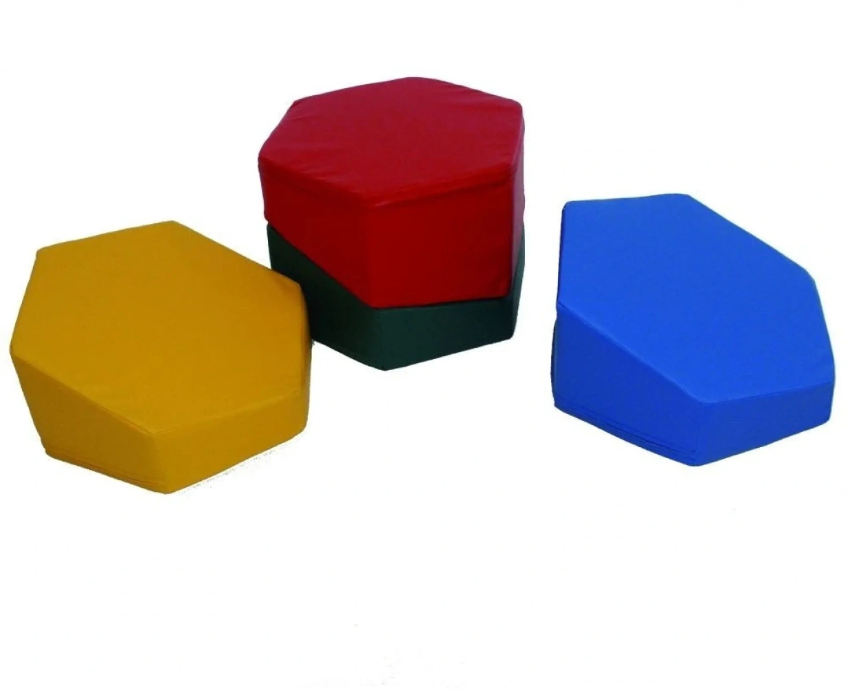 Materiál: PU měkký pěnový materiál Potah: Polygrip ( koženka ) Rozměr: 4 ks tvaru šestiúhelníku Dodáváno v různobarevné kombinaci