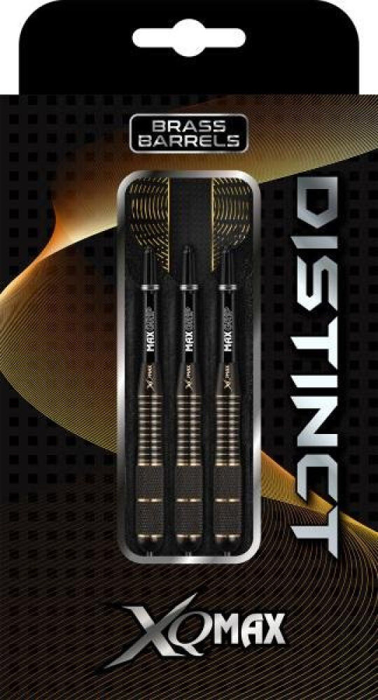 Steelové šipky Distinct Brass jsou mosazné šipky v černo-zlatém designu. Barrely zdobí logo XQMax a jsou doplněny nylonovými násadkami a letkami.