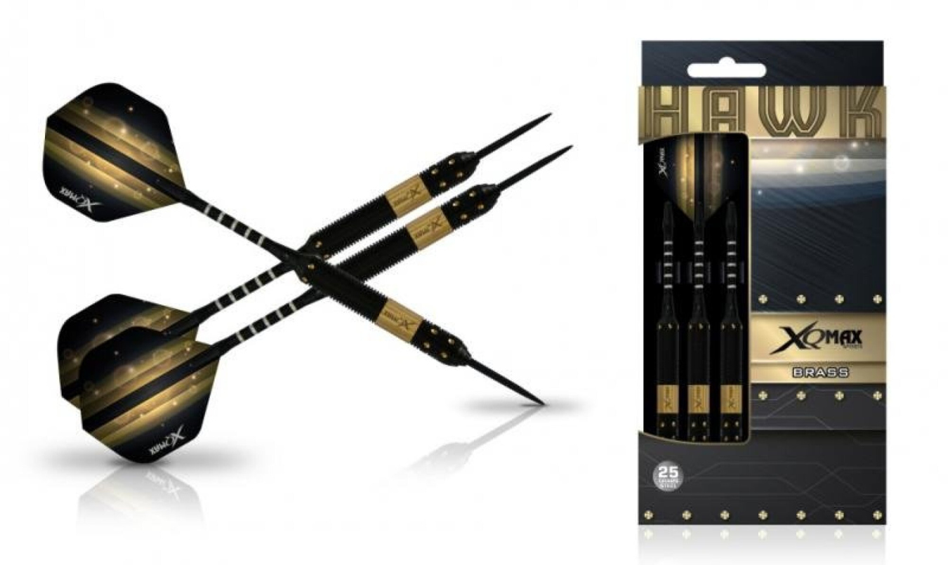Steelové šipky XQMax Hawk jsou kvalitní mosazné šipky. Barrely jsou v černozlatém designu a zdobí je logo XQMax. Jsou doplněny hliníkovými násadkami a letkami XQMax. Baleno v plastovém pouzdře. Šipky dostupné v různých variantách hmotností.