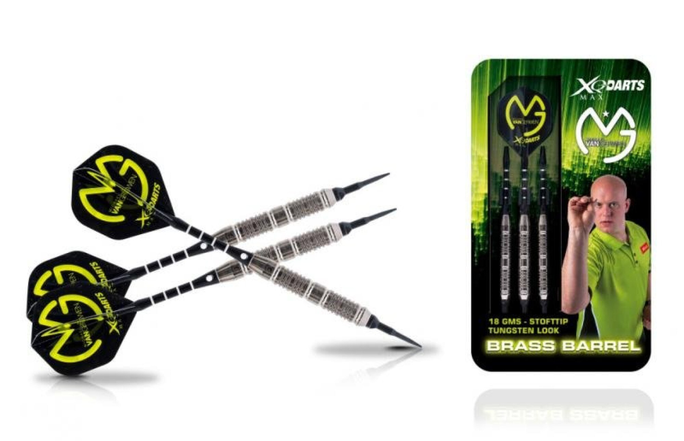 Softové brassové šipky Michael van Gerwen mají mosazné barrely s tungstenovým vzhledem. Doplňují je hliníkové násadky a 100-mikronové letky MvG. Součástí balení je plastové pouzdro. Tyto šipky jsou dostupné i ve více variantách.