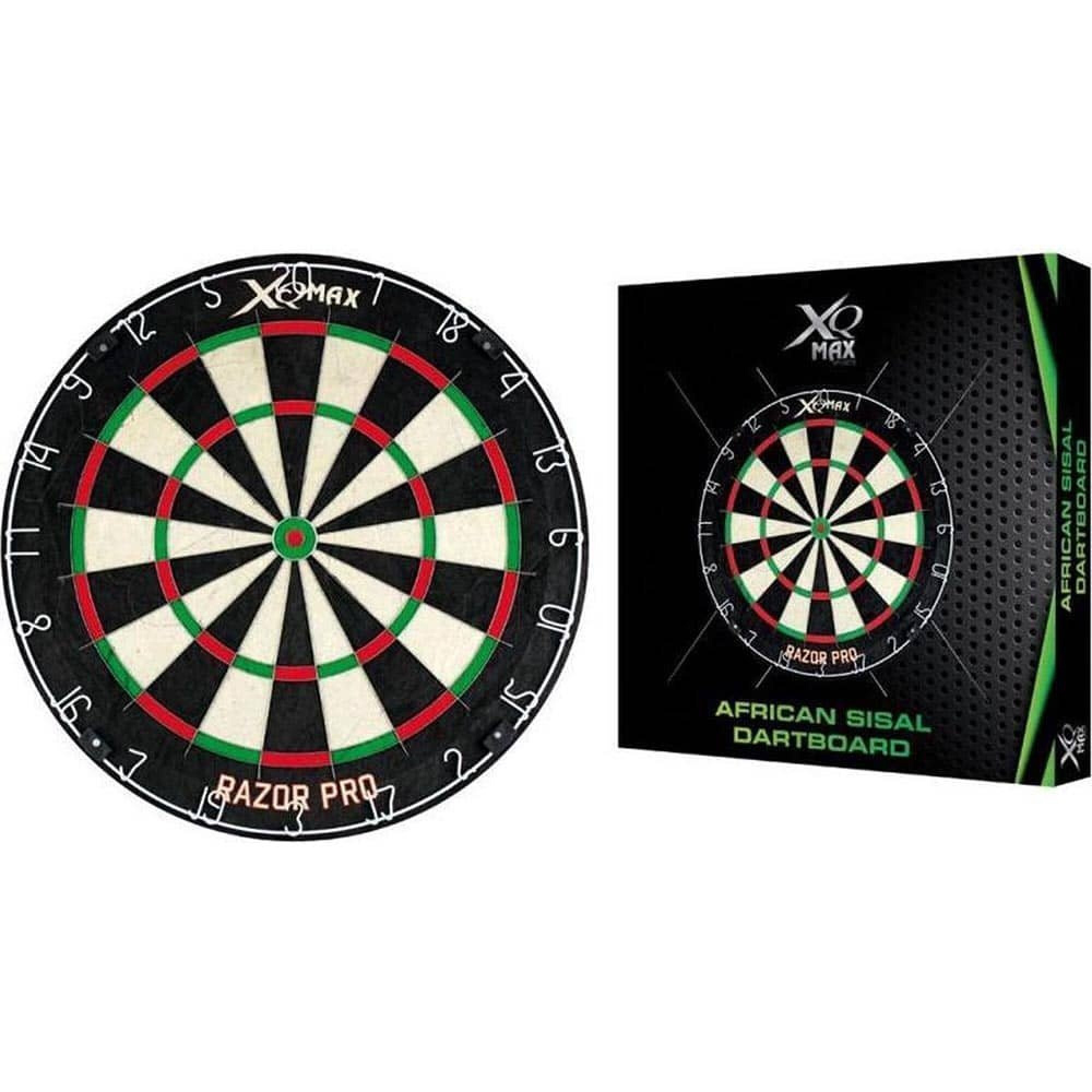 Vysoce kvalitní herní terč od XQmax, model Razor Pro. Vyrobeno z prvotřídního afrického sisalu, který poskytuje vysokou pevnost a odolnost. Terč vyniká jemnějším oddělením dráty mezi segmenty, aby se minimalizoval počet zbytečných odrazů šipek od konstrukce terče. Vhodný pro soutěže.