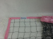 Síť VOLLEYBALL beach se šňůrou : Volejbalová síť pro plážový volejbal. Uzlová síťovina černá z polypropylenu 2 mm, oko 10 cm. Horní okraj je oblemován polypropylenovým růžovým popruhem, hotová šíře lemování 5cm. V popruhu je protažena polypropylenová šňura 5mm. Boky jsou lemovány PP růžovým popruhem, hotová šíře lemování 5cm. Spodní okraj je také lemován a obšitý.