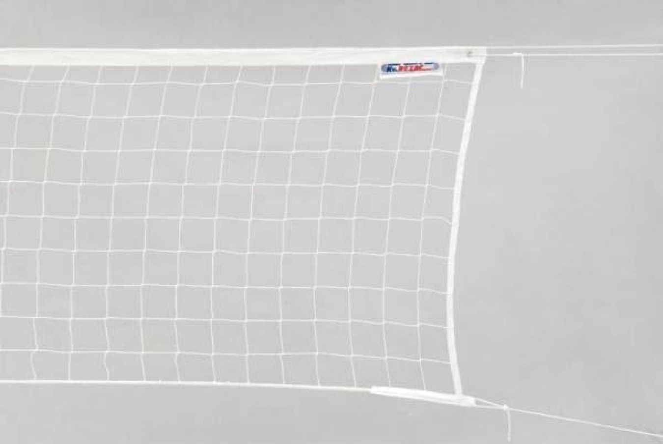 Síť VOLLEYBALL s lankem-bílá: Volejbalová síť pro běžné účely. Uzlová síťovina bílá z polypropylenu 2 mm, oko 10 cm. Horní okraj je oblemován polypropylenovým bílým popruhem, hotová šíře lemování 5cm. V popruhu je protaženo ocelové lanko o délce 12,5m, na jednom konci se smyčkou. Boky jsou lemovány PP bílým popruhem, hotová šíře lemování 2cm. Spodní okraj je obšitý. Síť je nahoře i dole opatřena úvazky o délce 2m. Součástí sítě jsou vytyčovací pásky šíře 5cm