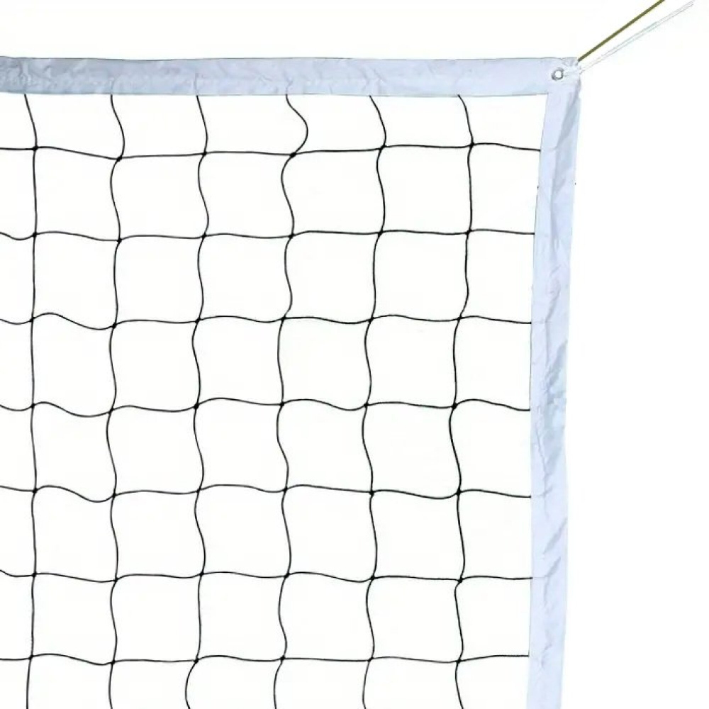 Volejbalová síť SEDCO NM102 je vyrobená z odolného PE materiálu, který zajišťuje dlouhou životnost a spolehlivost i při častém používání. Síť má rozměry 9,5 × 1 m a je vybavena ocelovým lankem o průměru 3 mm, které poskytuje stabilitu a pevnost během hry. Díky otvorům o velikosti 10 × 10 cm a černé barvě sítě je zajištěna dobrá viditelnost a profesionální vzhled. Horní bílá lišta přispívá k elegantnímu designu i snadné orientaci během hry.