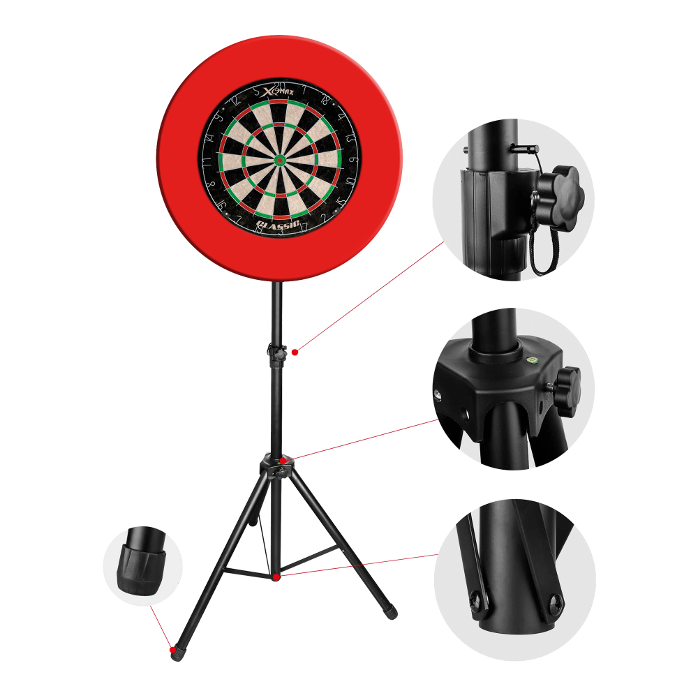 Přenosný stojan na terč vám umožňuje připevnit terč kdekoli bez vrtání, a to i na nerovném terénu. Velmi stabilní, odlehčená konstrukce, výškově nastavitelný 135 až 186 cm. Velmi rychlá a jednoduchá montáž.