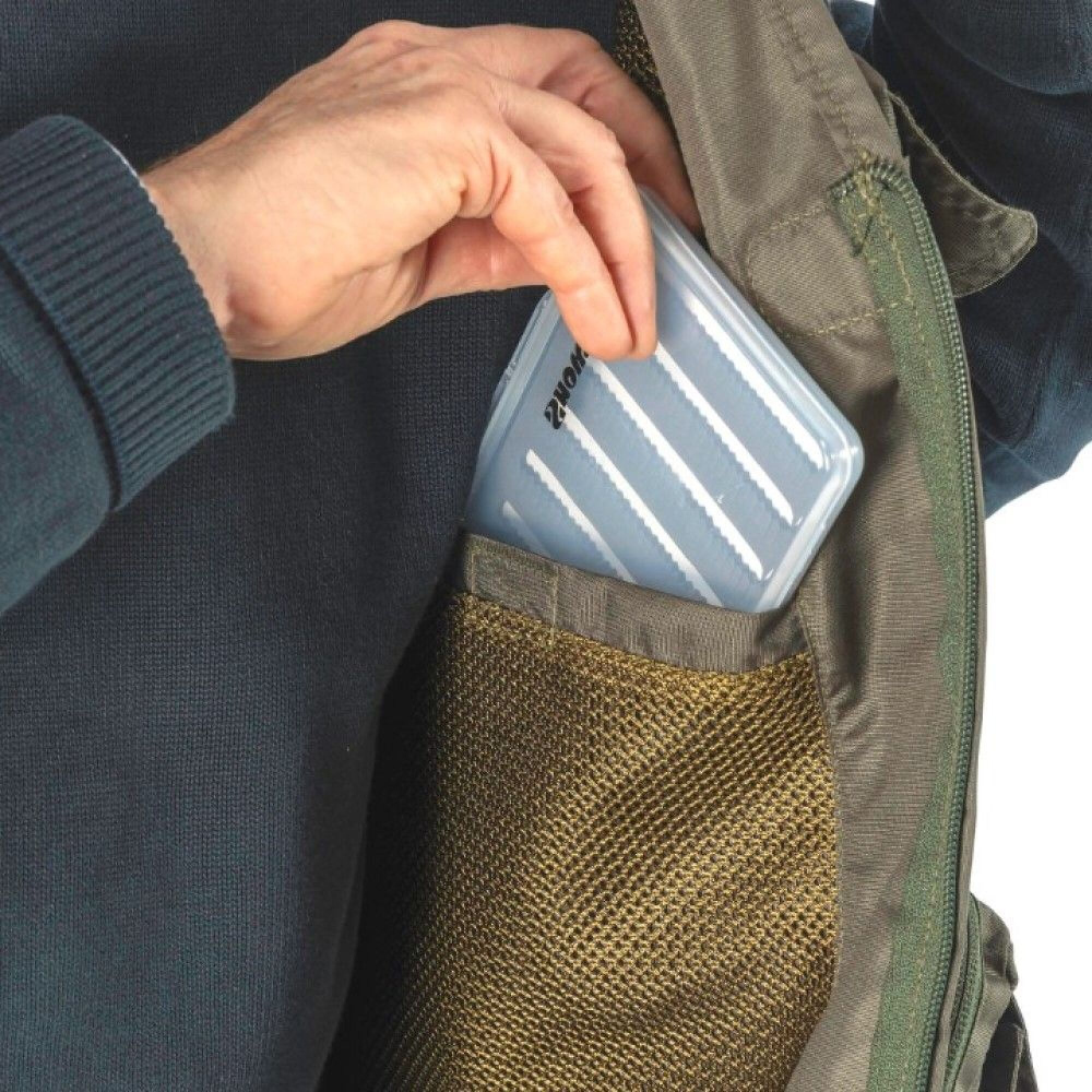 - 3x hlavní přední kapsa se zipem na muškařské krabičky