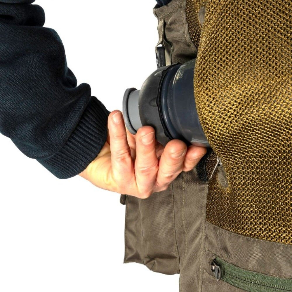 Vesta, která určuje směr vývoje. Vyrobeno z otěru odolného polyesteru, který má navíc PU vrstvu, která dělá vestu voděodolnou, rychle schnoucí a větru odolnou. Vesta obsahuje četné množství kapes pro ukládání muškařských krabiček, muškařských doplňků a ostatního materiálu. Zádová část obsahuje D kroužek pro zavěšení podběráku. Další zajímavou vychytávkou je odnímatelný zádový panel. Tímto jsme schopni reagovat na výkyvy počasí a teplotní rozdíly. Nechybí ani vnitřní kapsy. Kvalita, funkcionalita a styl, to jsou hlavní prvky této vesty, které je potřeba vyzdvihnout.