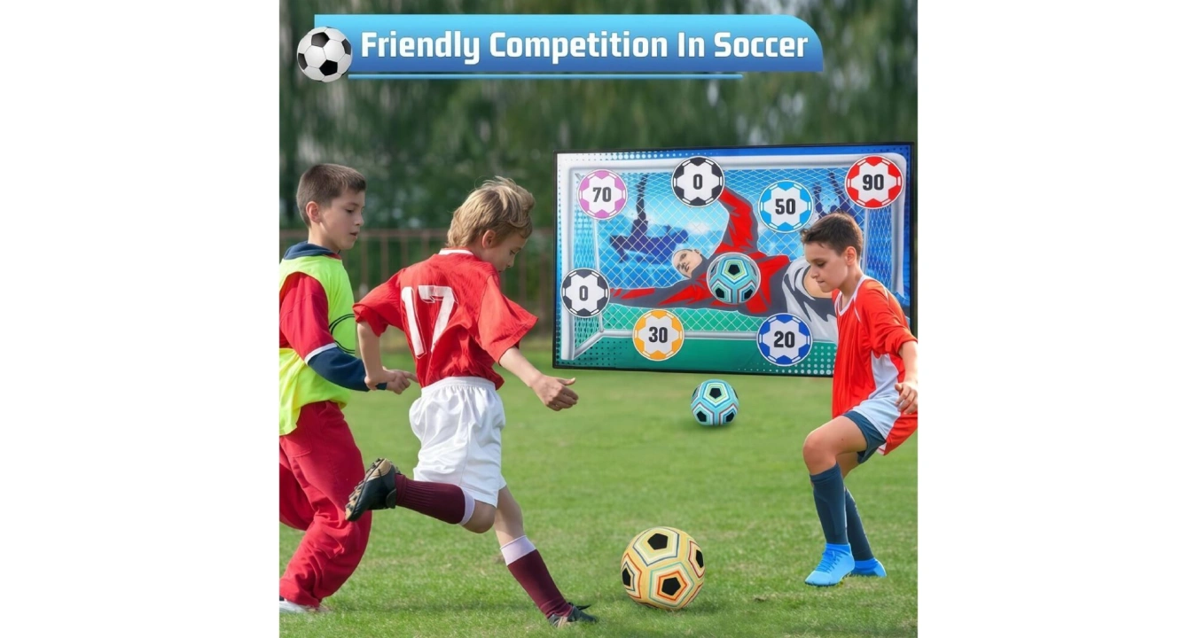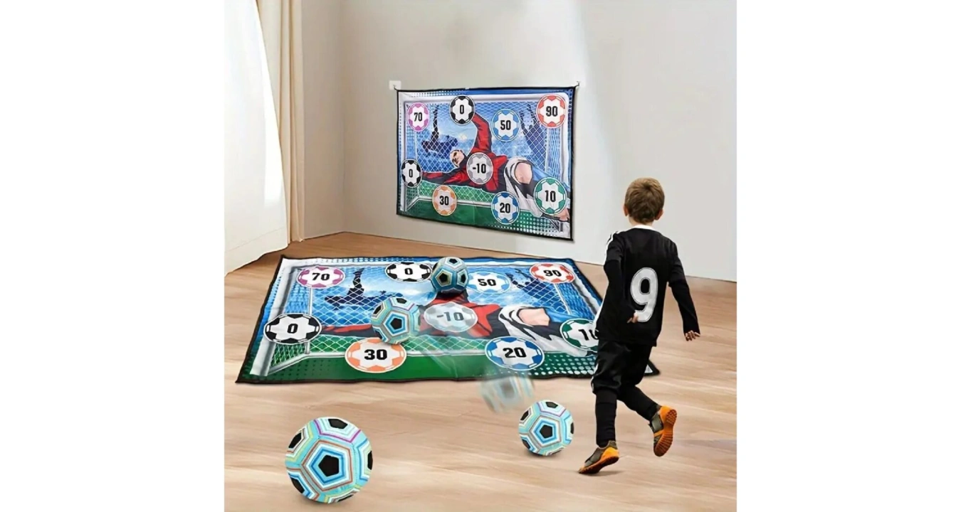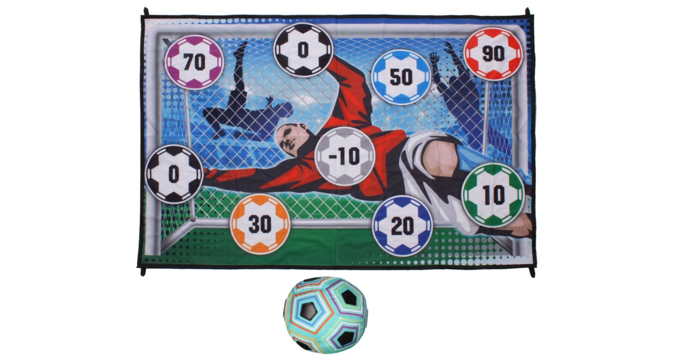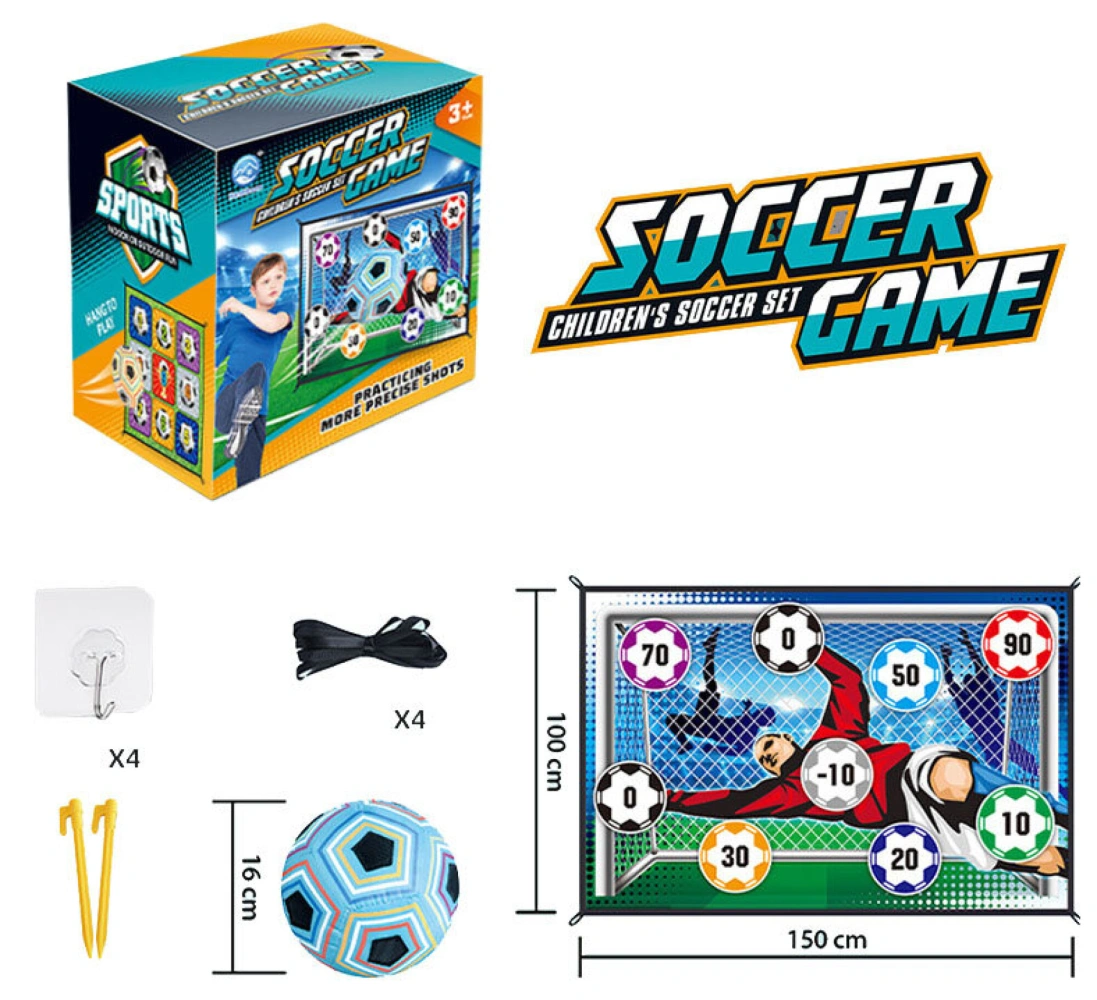 Pokud hledáte zábavnou hru pro své dítě a zároveň u něj už co nejdříve rozvíjet pohybové schopnosti a chuť ke sportu, je fotbalový trenažér Merco Soccer Game Indoor vhodný právě pro vás! Tato fotbalová sada obsahuje textilní terč s rozměry 150 x 100 cm, měkký míček vyplněný bavlnou, se suchými zipy na povrchu a průměrem 16 cm, dva plastové kolíčky do země, čtyři popruhy a čtyři háčky. Fotbalový trenažér můžete používat uvnitř i venku. Terč můžete jen položit na zem, ale díky očkům v rozích jej můžete i připevnit doma na zeď či zavěsit venku do branky. Výrobek není vhodný pro děti mladší 3 let!