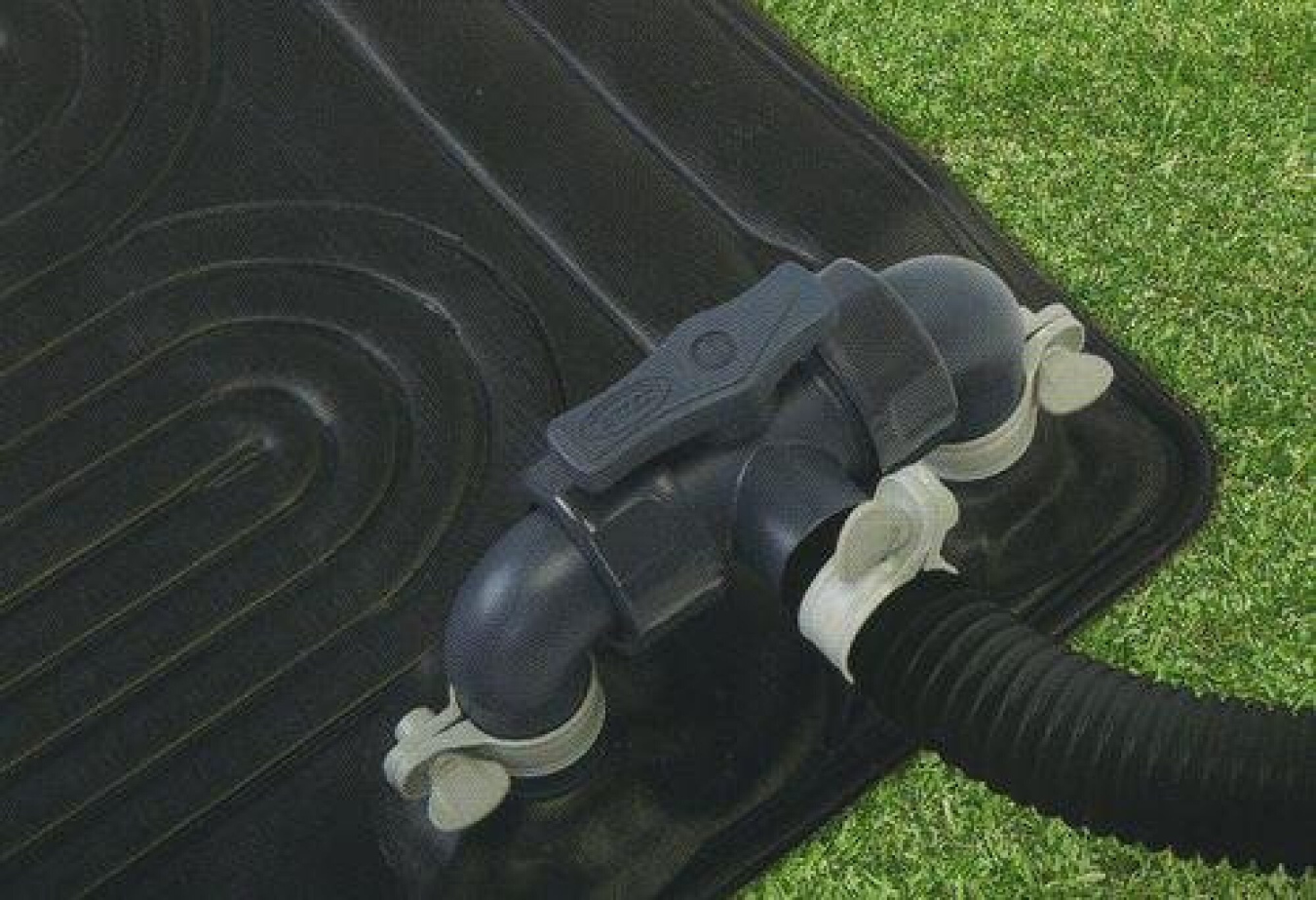 Je solární ohřev vody pro Váš bazén pomocí jednoduché technologie. Voda, která cirkuluje v plachtě o rozměru 1,2 m x 1,2 m se díky sluneční aktivitě ohřívá a teplotu vody zvedne cca o 3-5 C°. Jednoduché vypouštění a skladování. Součástí je přípojka (rozdvojka) k hadici (32 mm), 2 rozvodky (32 mm), ventil. Možnost montáže pro všechny bazeny s filtrací od firmy INTEX.