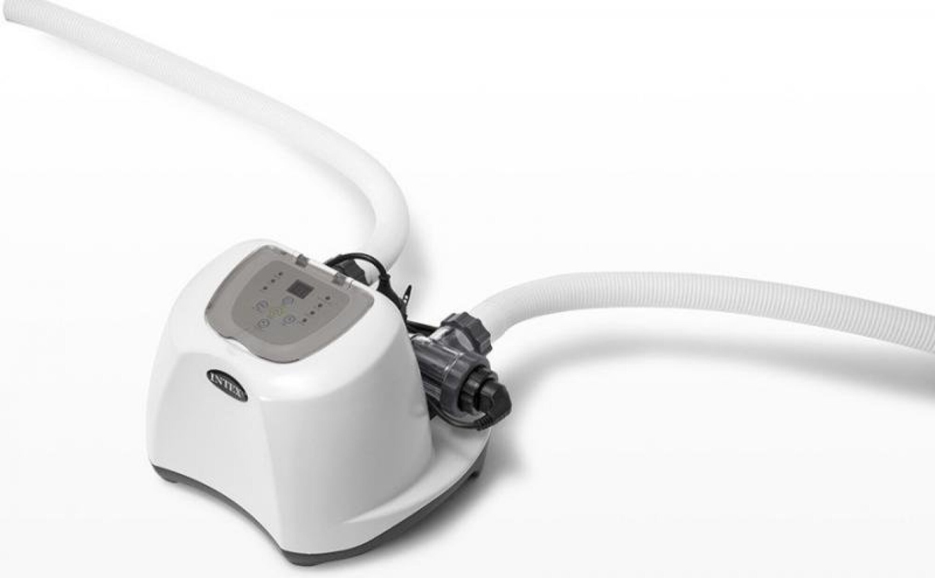 Chlorinátor s integrovaným systémem elektolýzy soli redukuje potřebné množství chlóru až o 70 %. Vhodný pro všechny nadzemní bazény Intex i jiné do objemu vody 26,5 m3