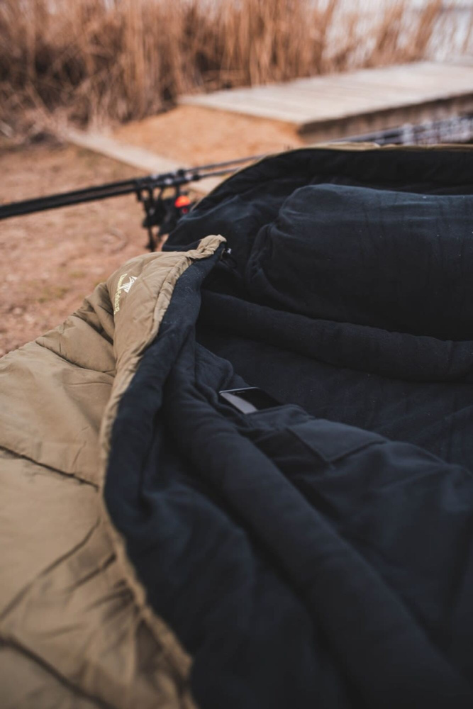 Ve vnitřní části spacího pytle naleznete kapsu na zip, která je určena pro mobilní telefon.