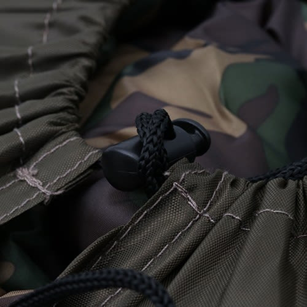 Super jemný vnitřní taft 190D odolný proti roztržení a umožňující volný pohyb uvnitř spacího pytle. Vnější materiál camo DPM je vodě odolný a prodyšný. Obvodové chráněné zipy a stahovací kapuce zabraňují vniknutí chladu. Tvar kukly maximalizuje udržení tepla uvnitř pytle. Zipy jsou dvousměrné bezpečnostní a jsou po obou stranách. Vhodně umístěná poutka a suché zipy umožňují rychlé opuštění spacího pytle. Protiskluzový pás a záchytná klapka udrží spací pytel na lehátku ve správné poloze. Spací pytle jsou dodávány včetně přepravního obalu.