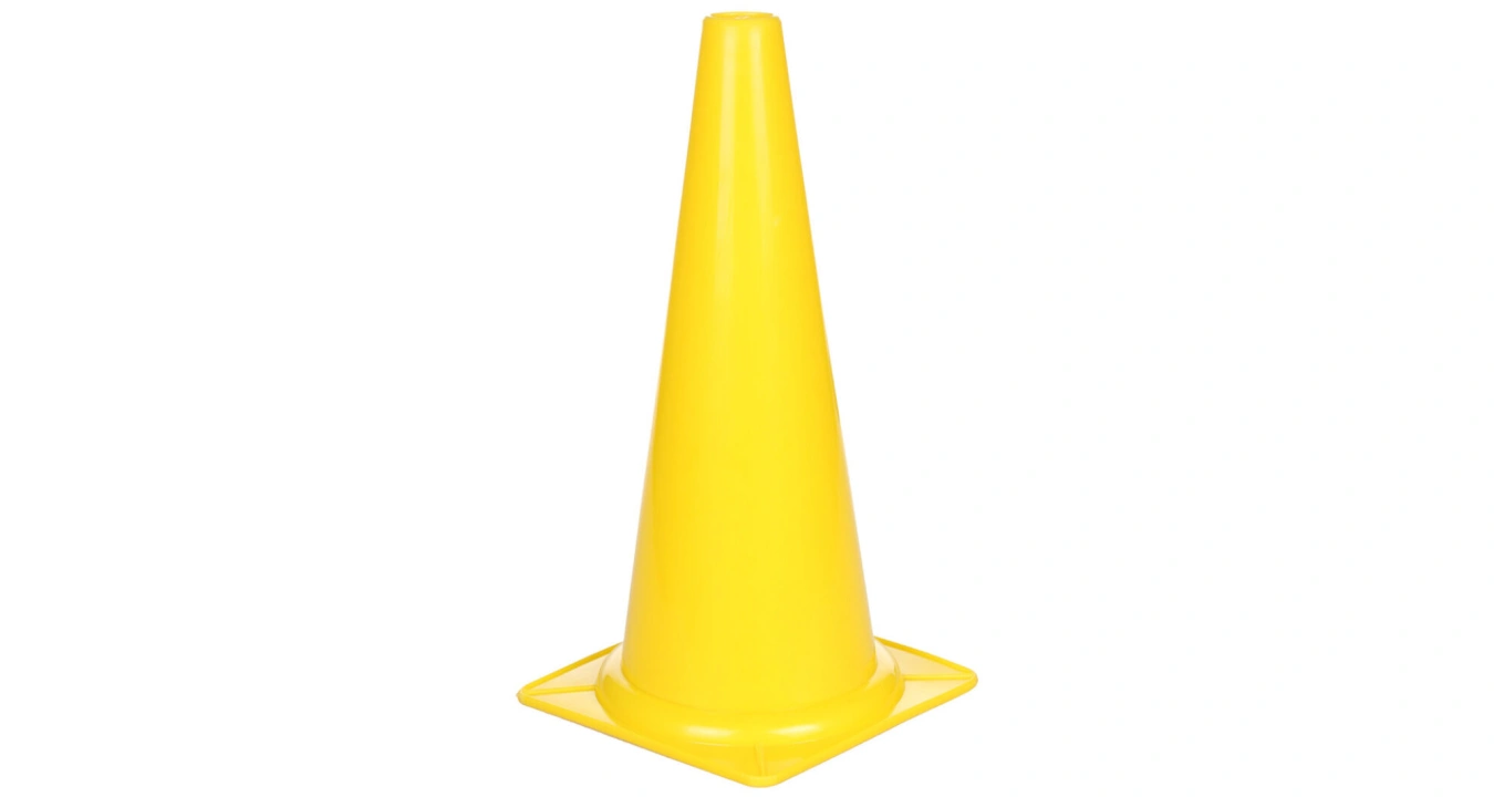 Tréninkový sportovní kužel ve více barevných provedeních jako pomůcka pro zřetelné vyznačení dráhy, hrací plochy atd.