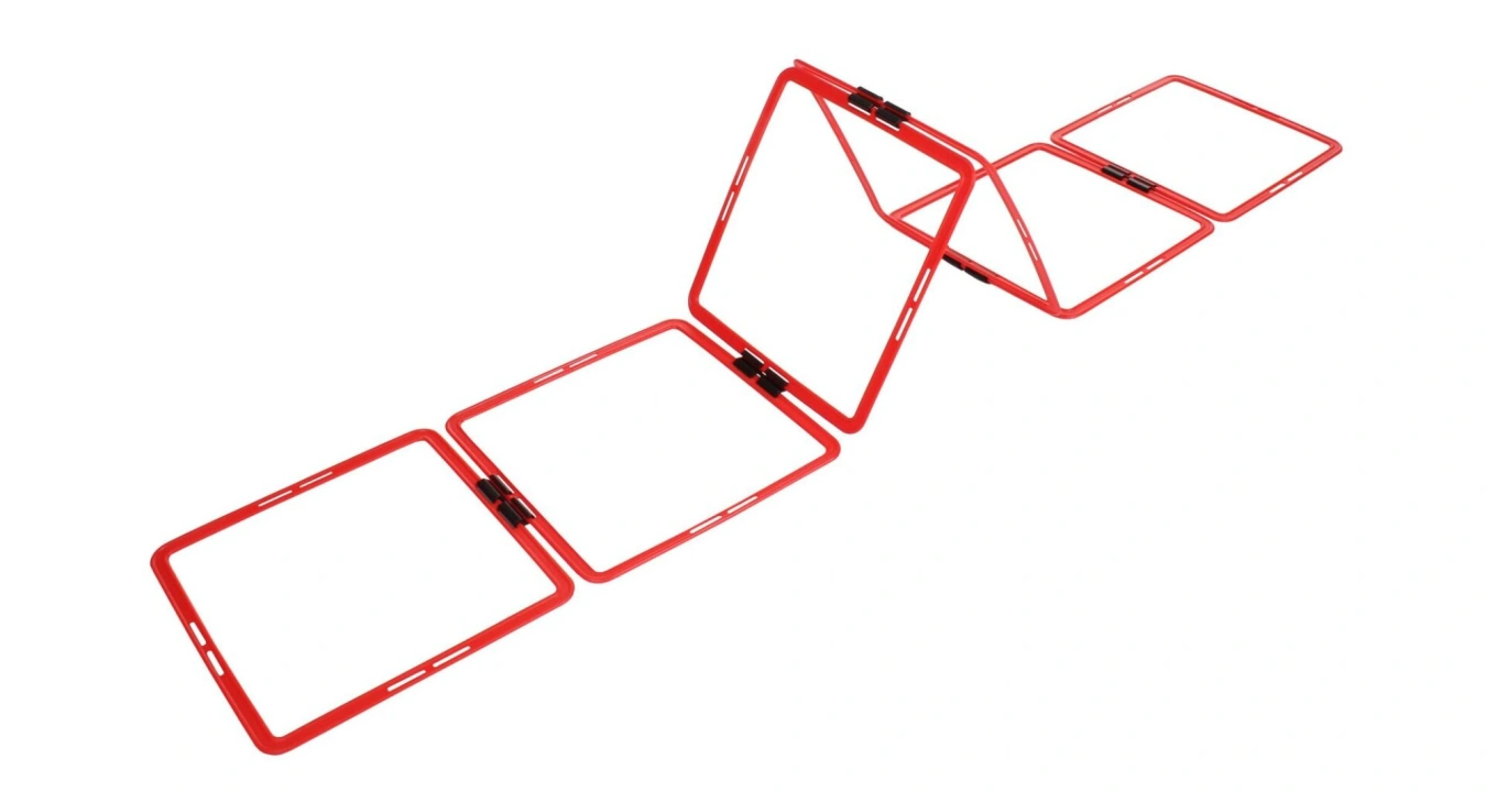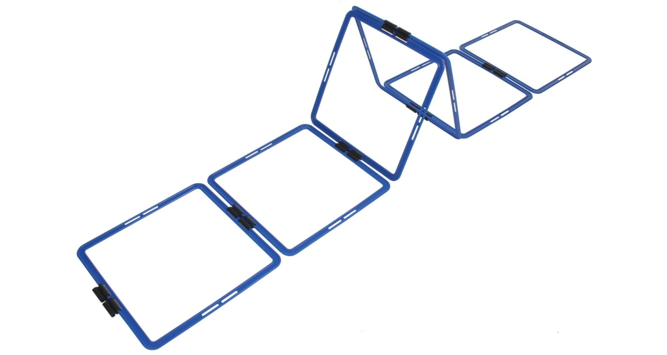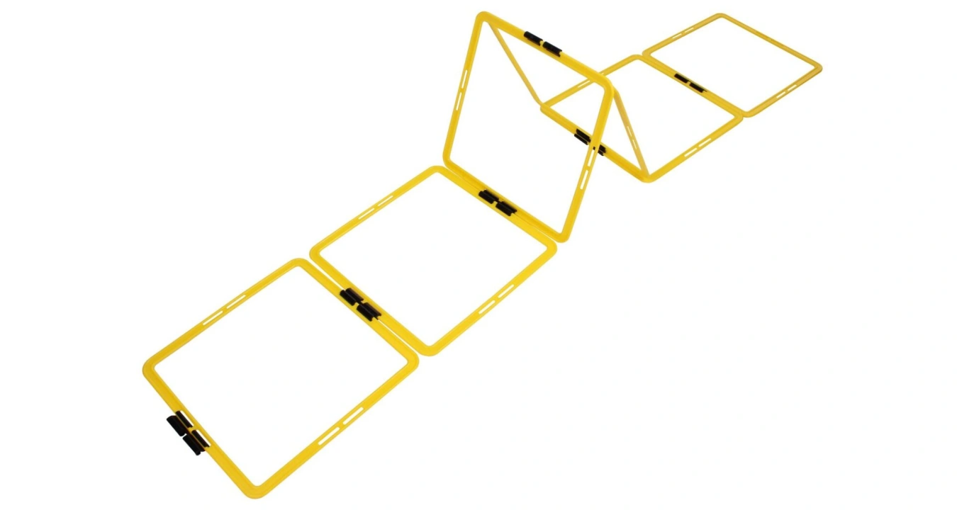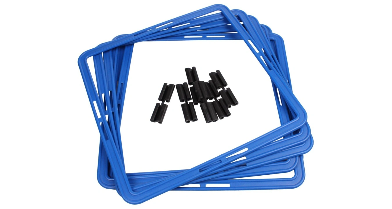 Sada šesti agility překážek se hodí pro sportovce všech sportovních odvětví. Díky této pomůcce můžete efektivně trénovat rychlost a koordinaci dolních i horních končetin. Sadu mohou využít také sportovní kluby všech věkových kategorií. Své uplatnění najde i ve školách a školkách. Čtverec o velikosti 40 x 40 cm má po každé straně speciální otvory pro propojení spojkami. Sestavit tak můžete agility dráhu různých rozměrů. Doplňte tuto pomůcku o další agility pomůcky a vytvořte tak komplexní agility dráhu. Vybrat si můžete i z několika barevných provedení.