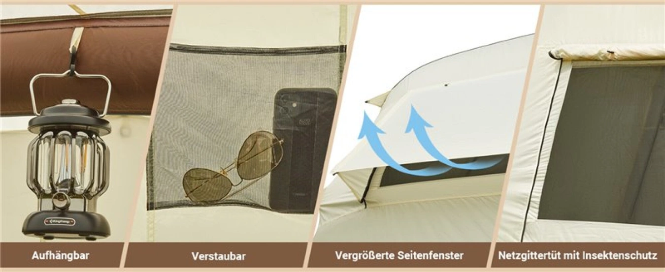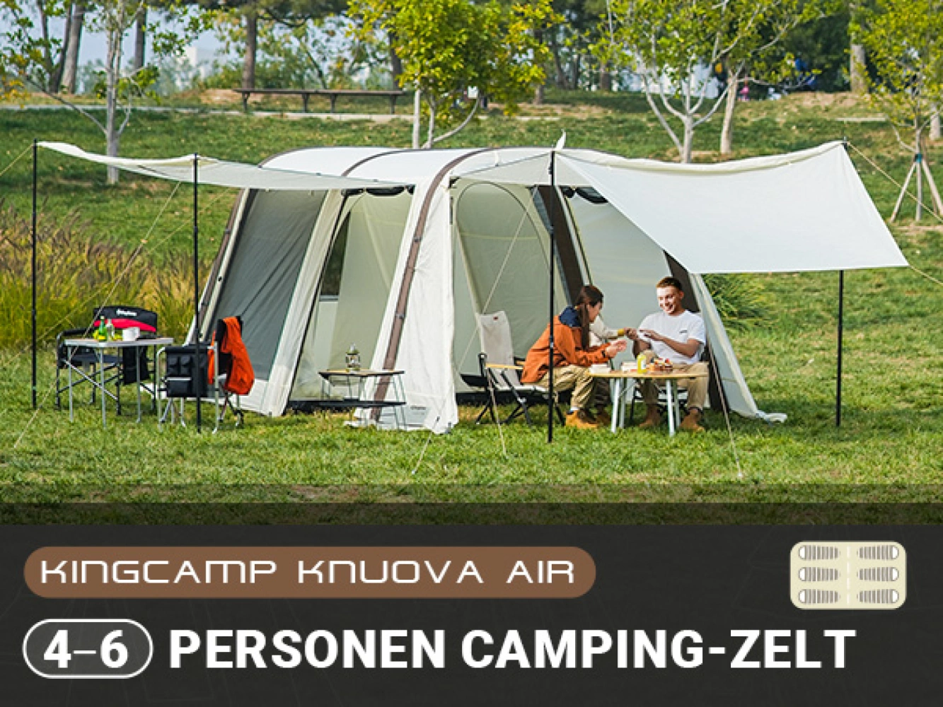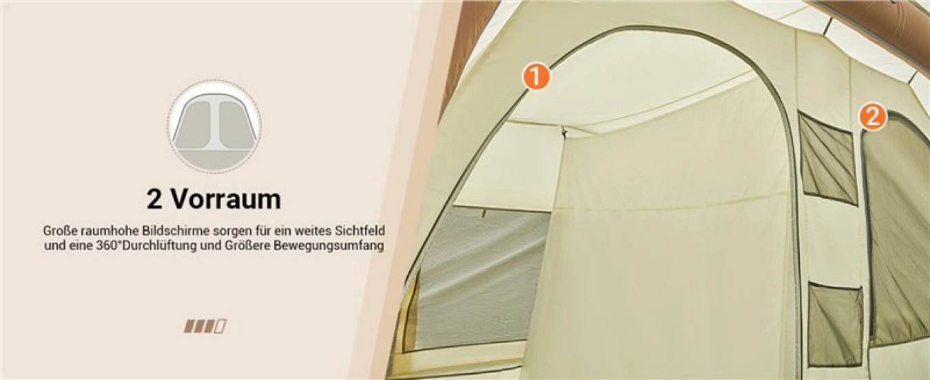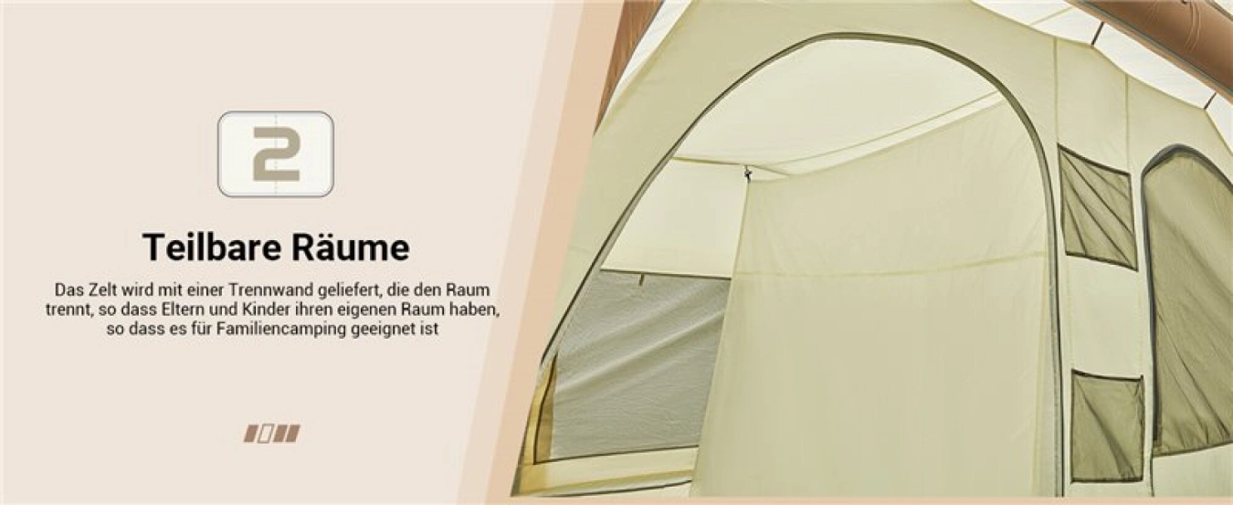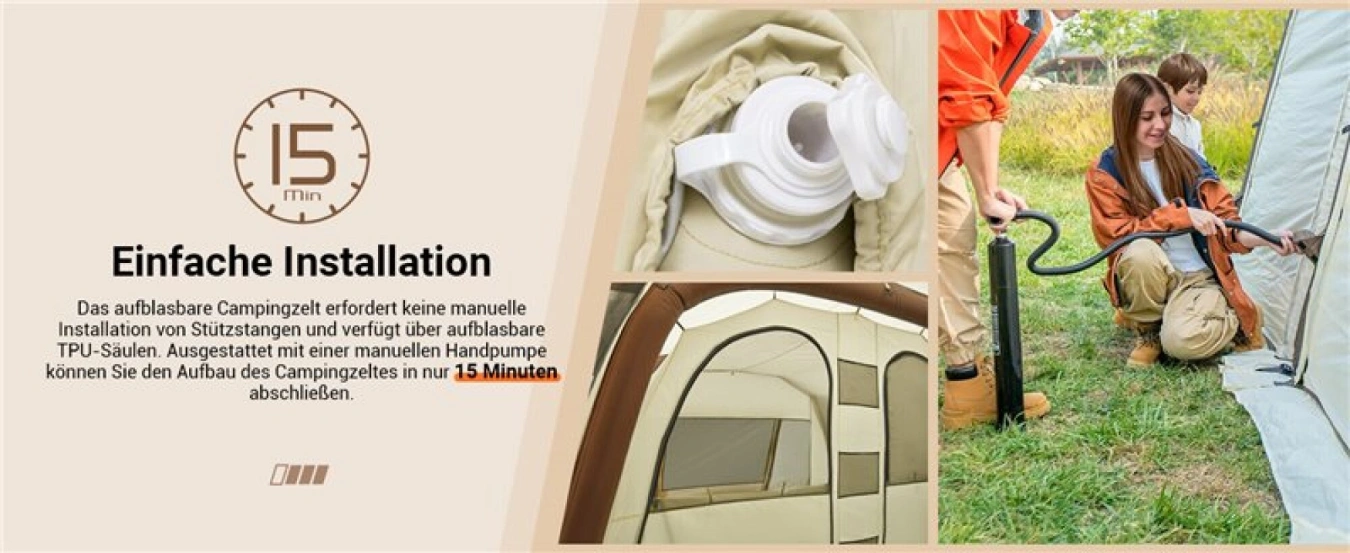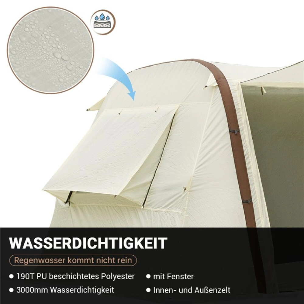 Velký rodinný stan vynikající kvality pro 6 - 8 osob s nafukovací konstrukcí, který je velmi dobrý na vaši dovolenou a udrží vodní sloupec min. 3000 mm.