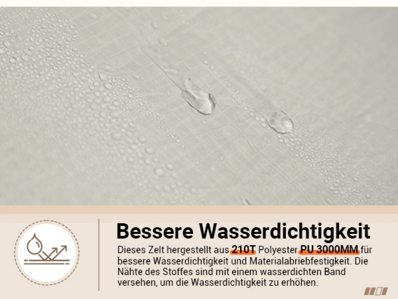 - materiál vnějšího stanu: polyester 75D 190T, PU vodní sloupec 3000 mm