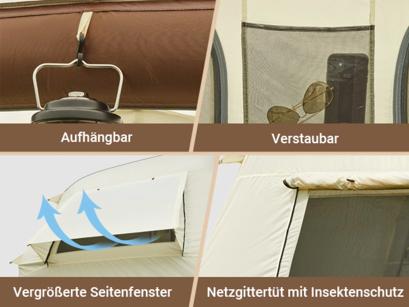 - odkládací kapsy na bocích stanu