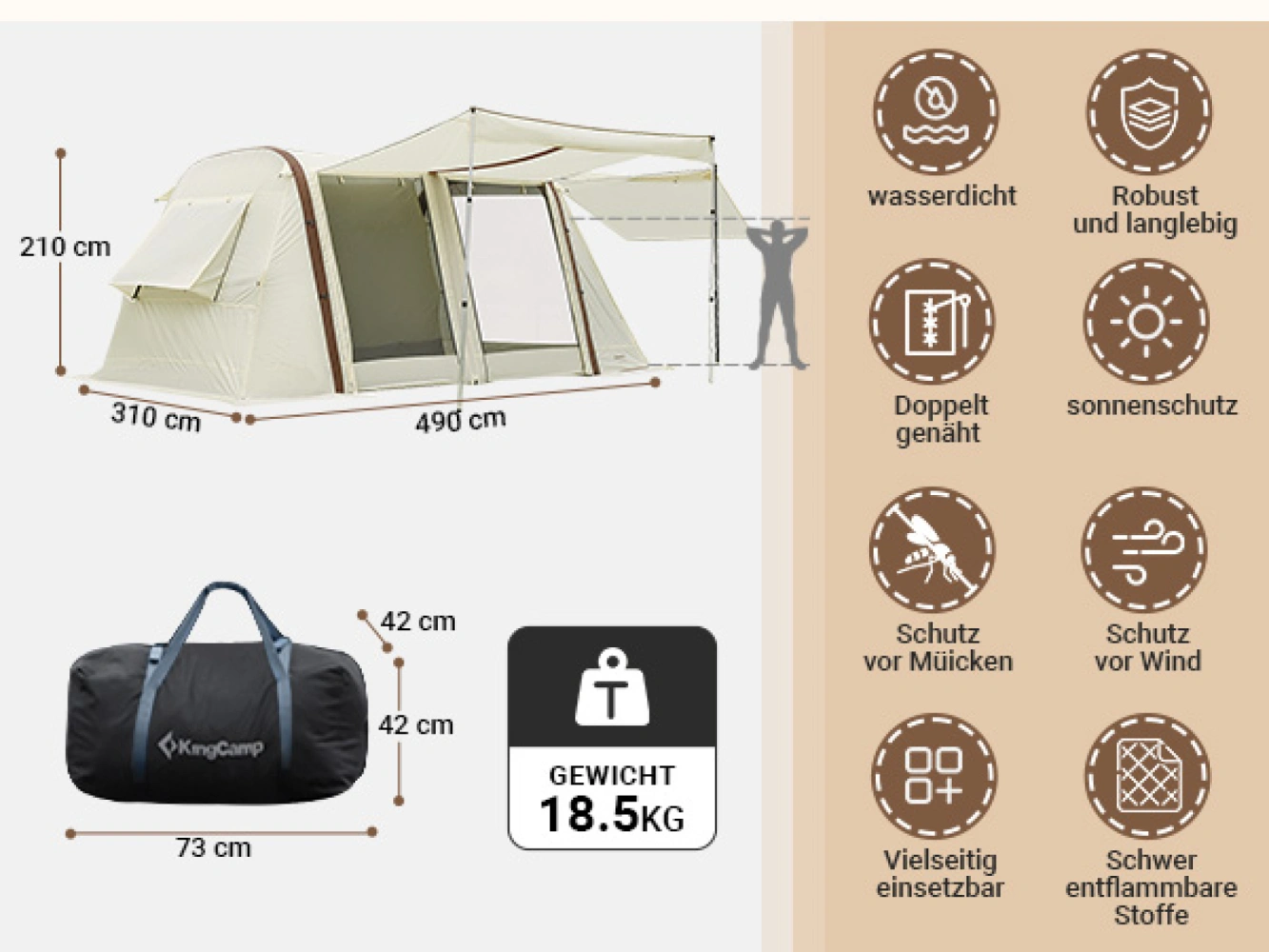 - rozměr stanu 490 x 310 x 210 cm