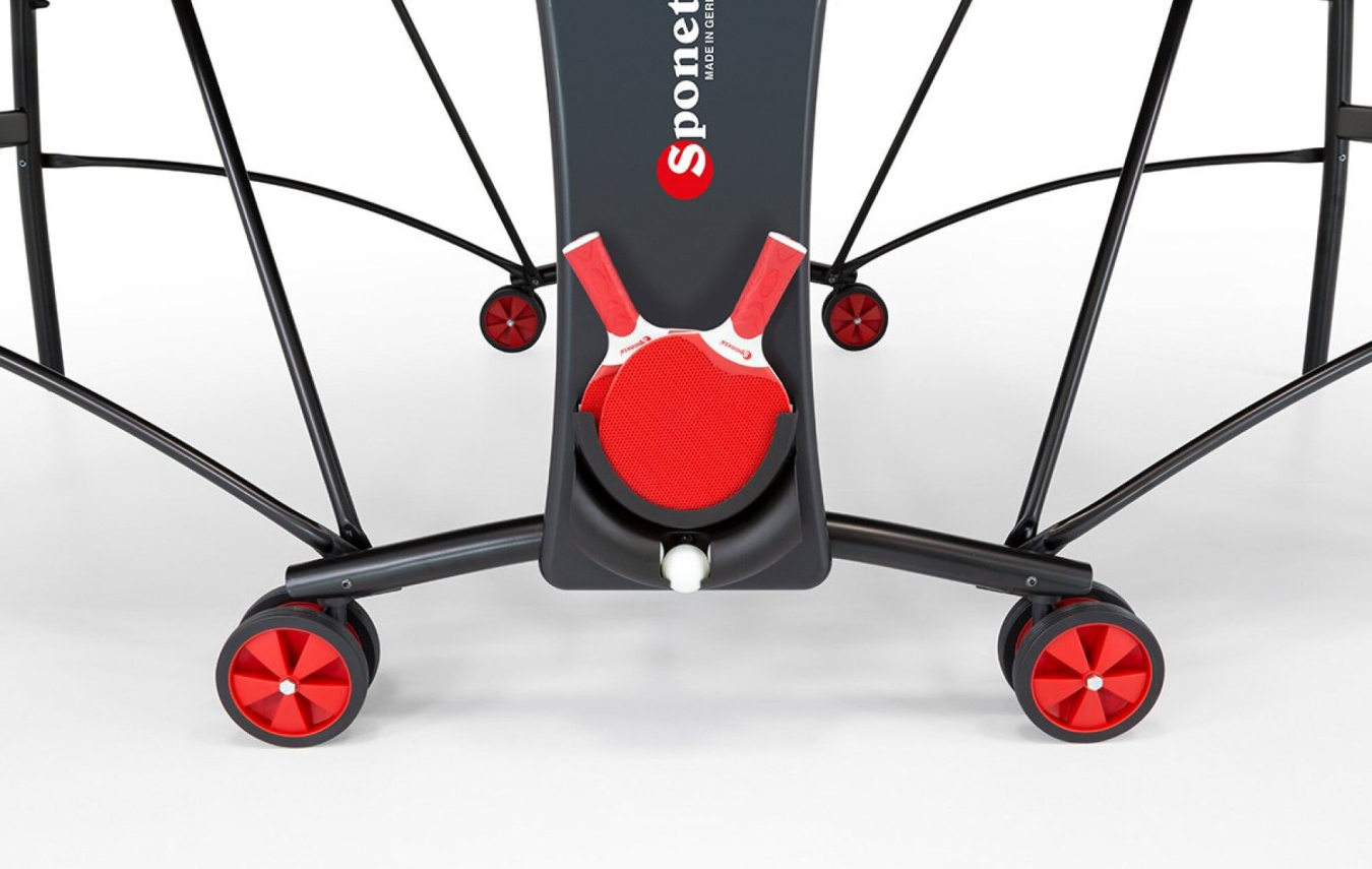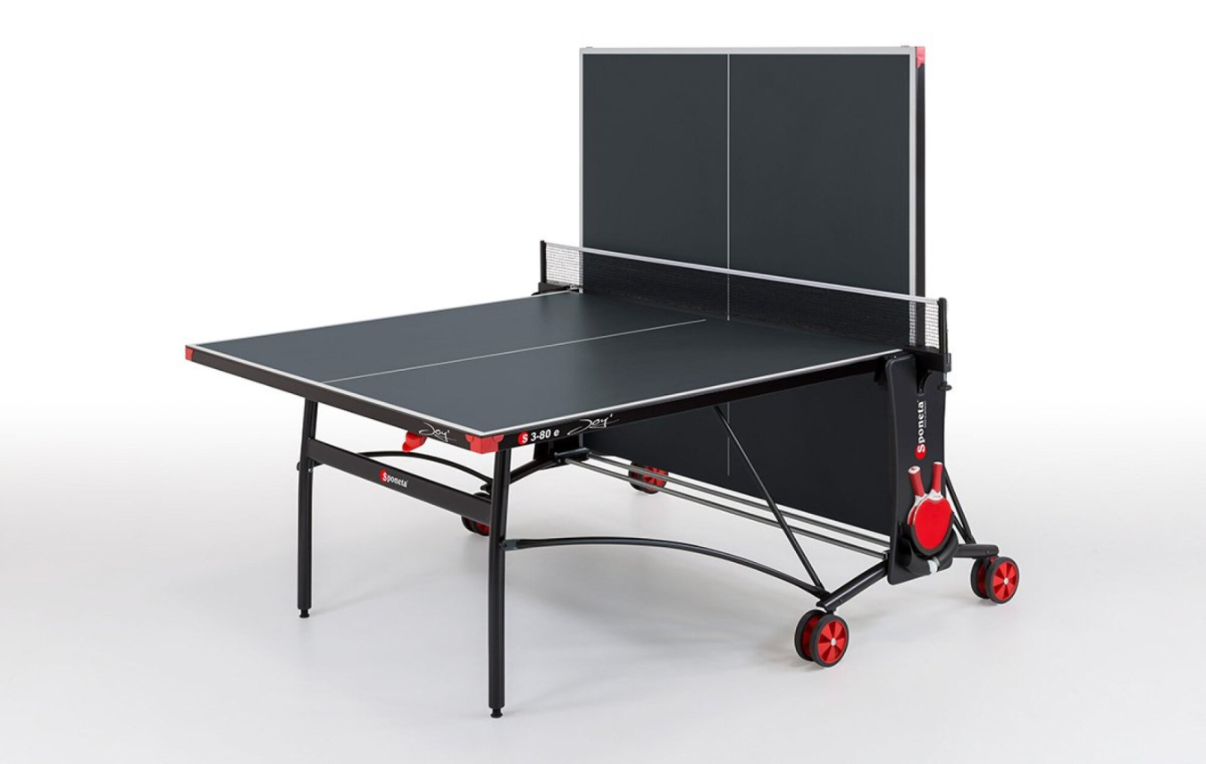 Spolehlivý stůl značky Sponeta pro aktivní využití volného času (Třída C EN-14468-1. Vhodný pro vnitřní i venkovní prostory. Perfektní do každého počasí. Stůl je vhodný pro pro všechny od rekreačního hraní až po závodní hry. Konstrukčně vyniká zejména svým povrchem z melaminové pryskyřice, která zajišťuje odolnost vůči vlhkosti a venkovním povětrnostním vlivům. Velikost stolu sestaveného stolu odpovídá normám (274cm x 152,5cm x 76cm). Rámový profil L-36mm. Kovové části jsou opatřeny práškovým lakováním pro extra odolnost.