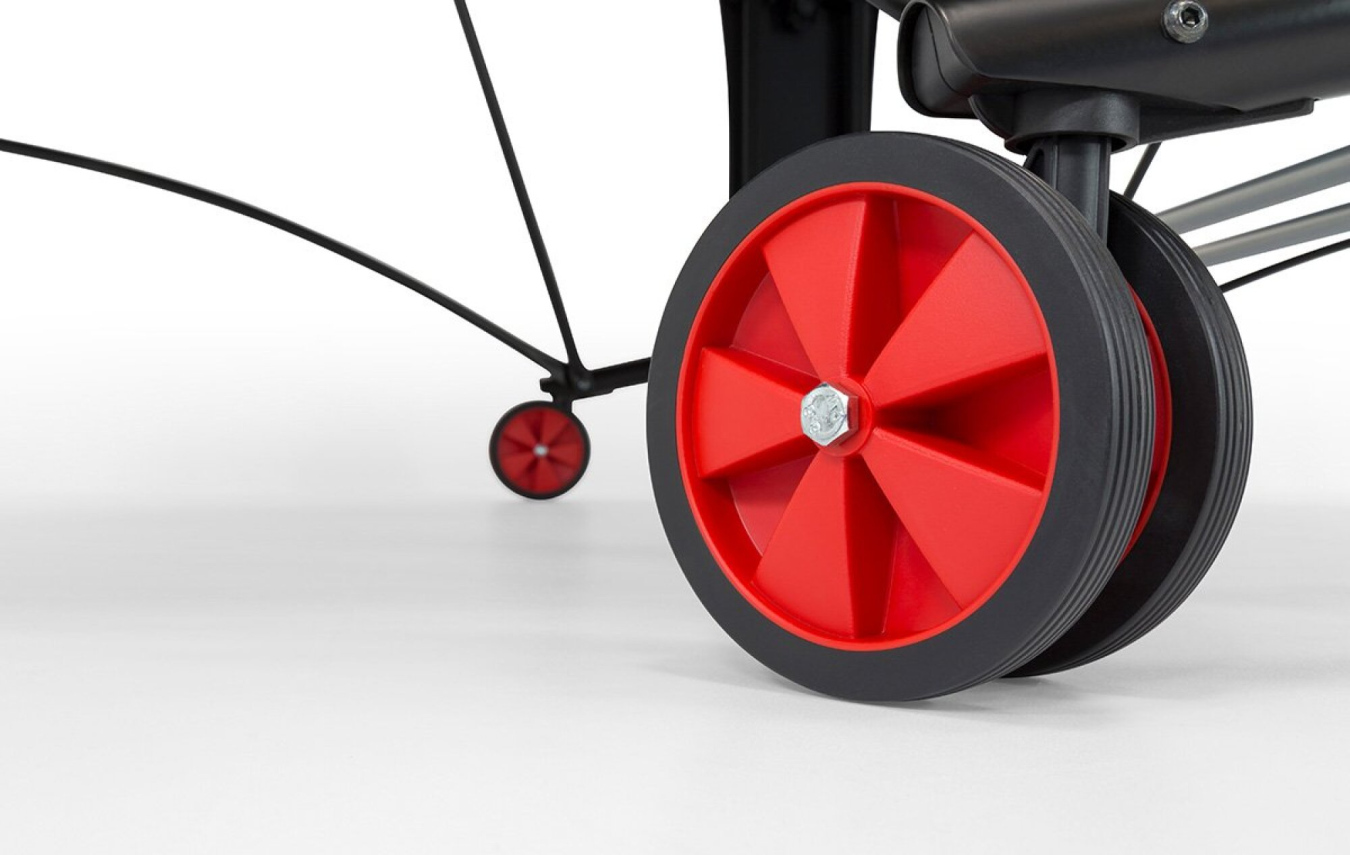- 4 robustní otáčivá dvojitá kolečka s pogumovaným povrchem