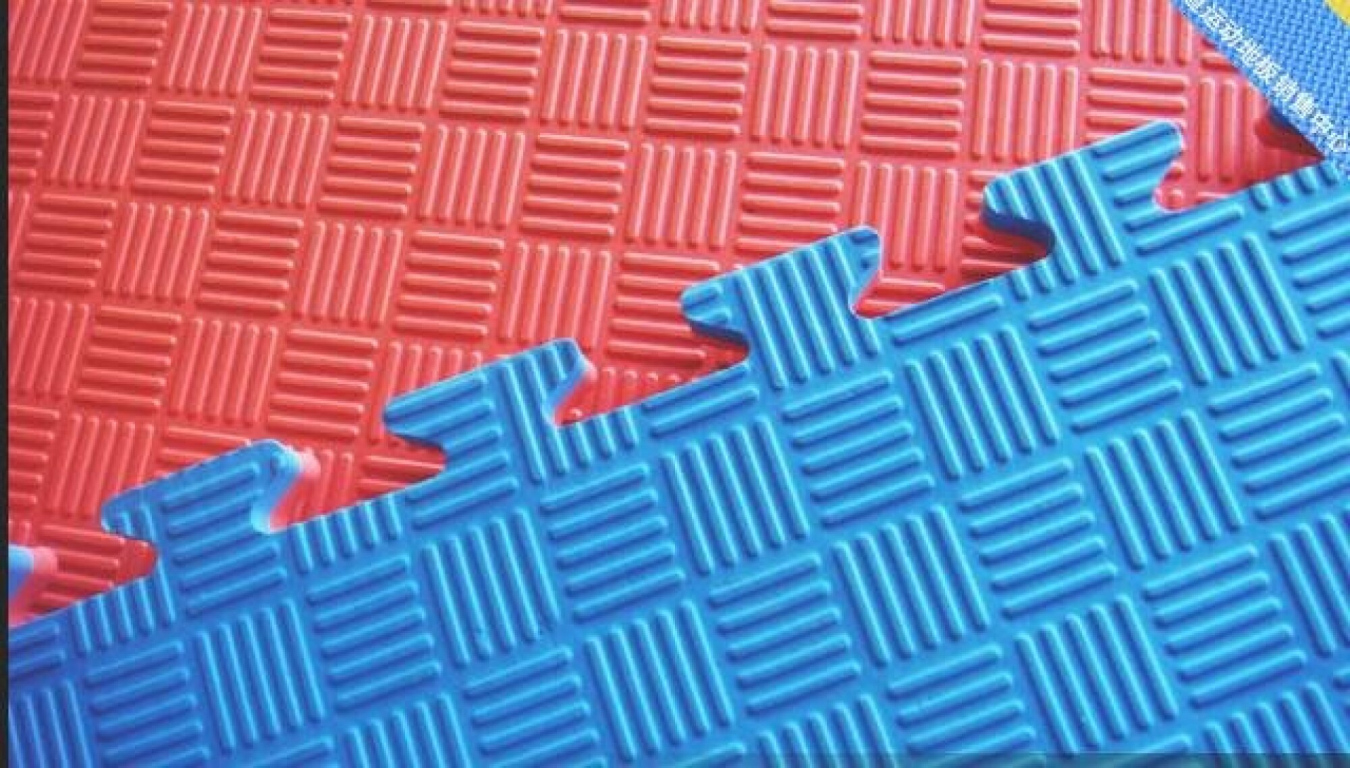Taekwondo podložka tvaru puzzle. Jednotlivé díly do sebe přesně zapadají.