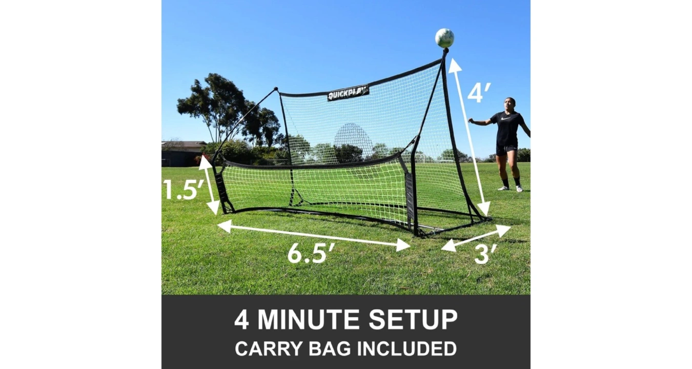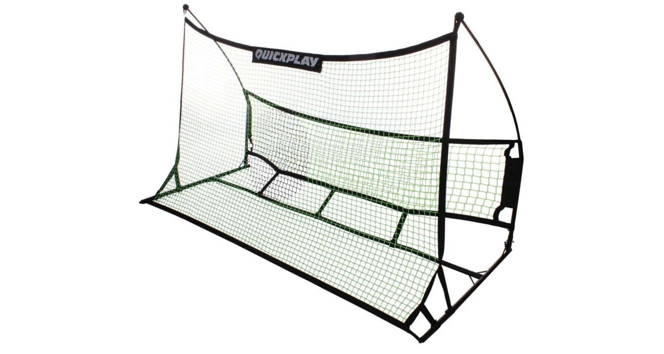 Fotbalová nahrávací síť Quickplay Tekkers Trainer Dual Net je účinná tréninková pomůcka, díky které si zlepšíte techniku přihrávek a zpracování míče. Systém dvou sítí umožňuje intenzivní nácvik přesnosti, síly a kontroly míče ze země i ze vzduchu. Je ideální pro týmový i sólový trénink a vhodný pro všechny věkové kategorie. Tento přenosný fotbalový trenažér dokážete sestavit během pár minut a součástí je také taška, díky které rozložený trenažér lehce uskladníte a přenesete. Do trávy jej upevníte pomocí přiložených kovových kolíků.