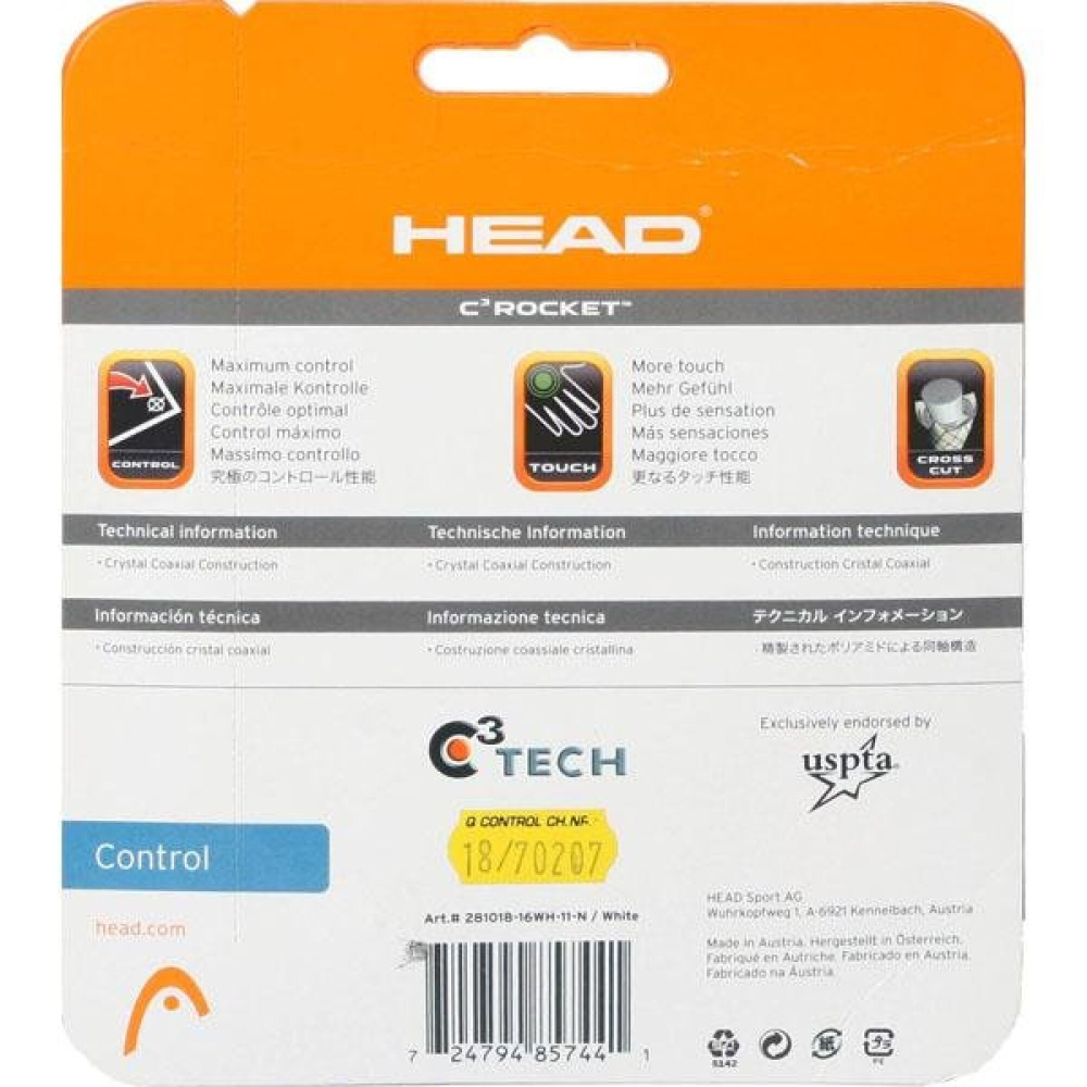Tenisový výplet HEAD C3 Rocket s technologií C3 kombinuje maximální elasticitu s vynikající kontrolou. Vnitřní vlákno je obaleno páskovými vrstvami.