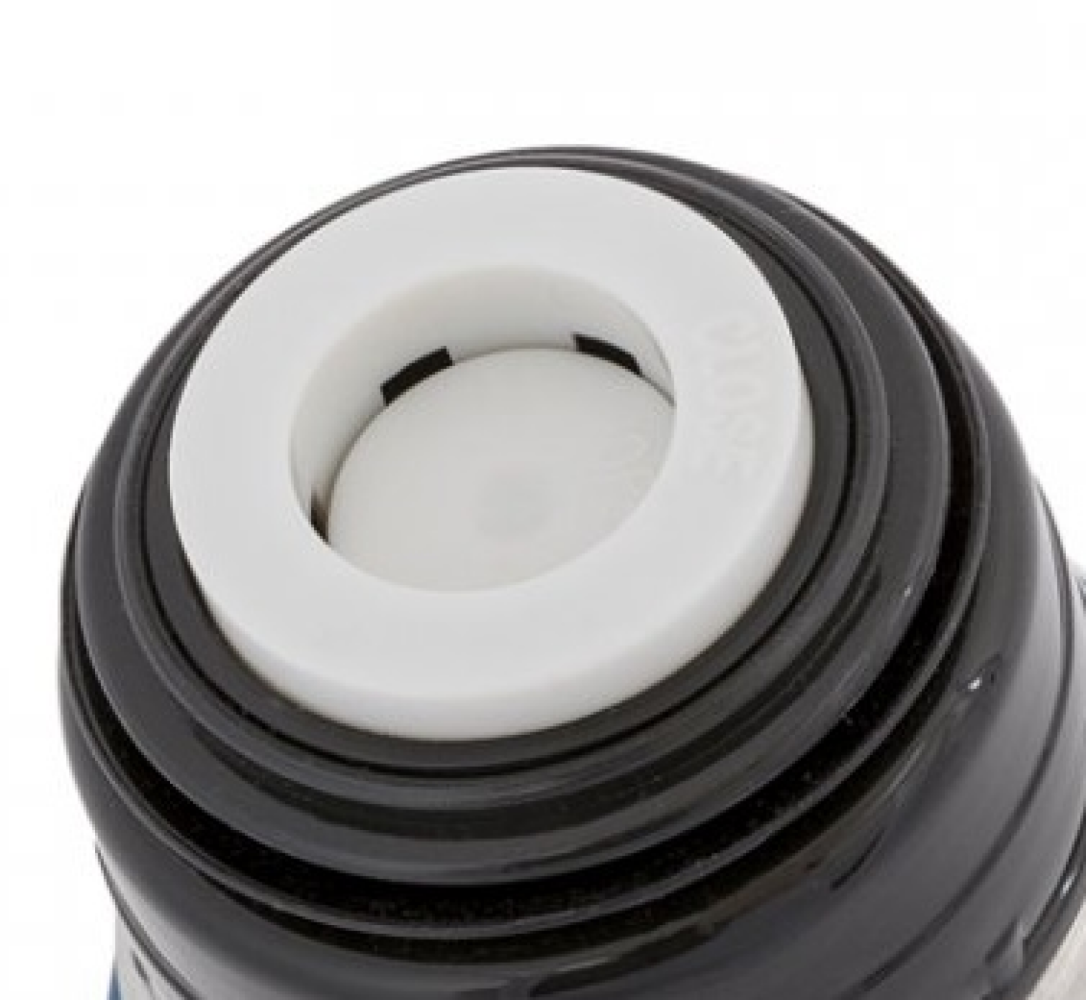 Nerezová termoska s víčkem, které zároveň slouží jako šálek. Uzávěr je tlačítkový, takže se jednoduše ovládá jedním prstem a to dokonce i v rukavicích.