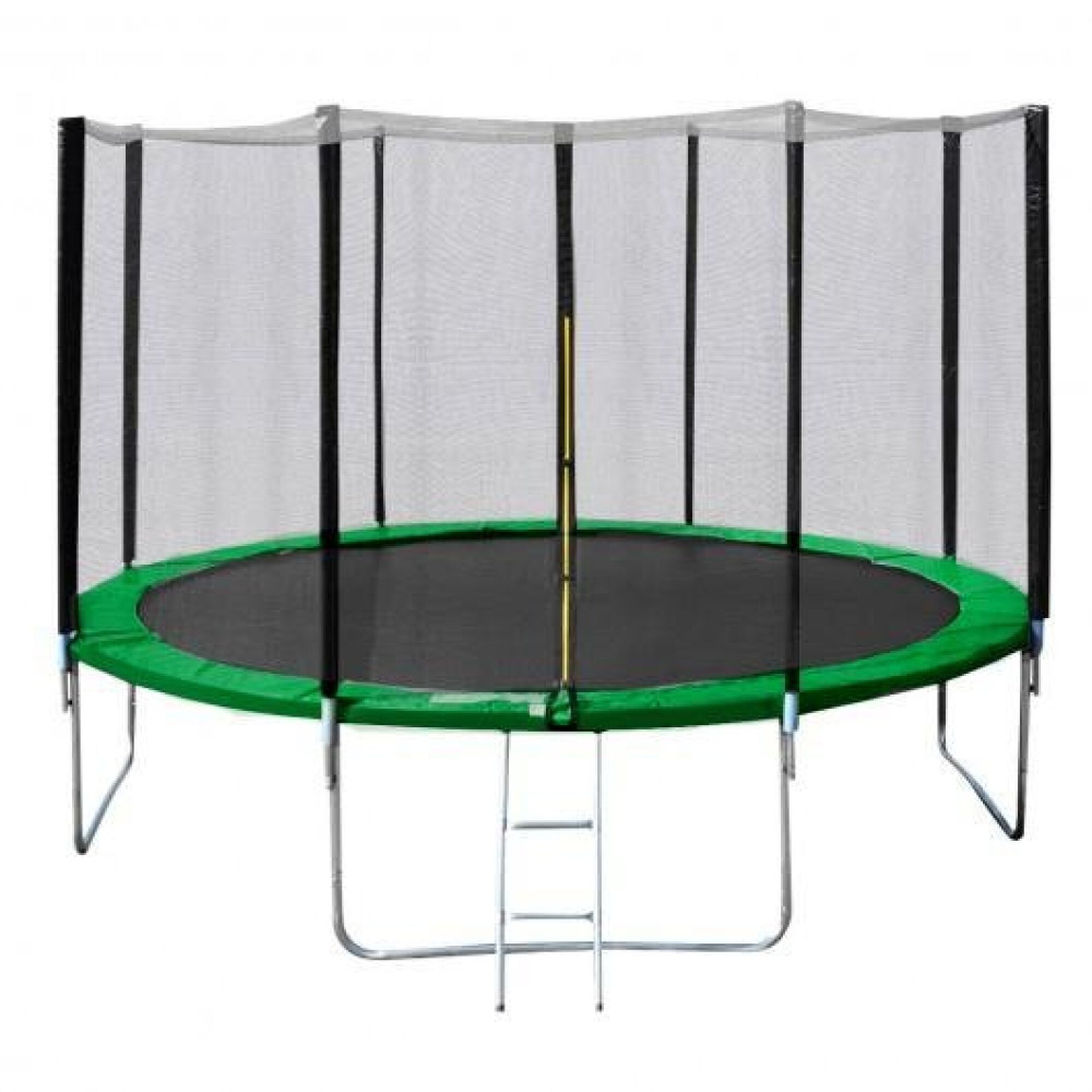 Trampolína o velikosti 426 cm s kvalitní konstrukcí z galvanizované oceli (trubky i pružiny), trubky jsou galvanizovány zevnitř i zvenku, což zajišťuje výbornou ochranu proti korozi. Vysoce kvalitní skákací materiál PP Mesh je odolný proti UV záření, silný ochranný kryt pružin je vyroben z odolného polyesteru. Pěna 15 mm - uchycení pomocí objímek. Trampolína má 8 nohou tvaru W, průměr tyčí je 38 mm. Ochranná síť je uchycena tak, aby neomezovala volný prostor ke skákání, veškeré spoje sítě jsou opatřeny vyměkčovací ochranou. Nosnost 150kg, Žebřík je součástí balení. Fotografie je ilustrační.