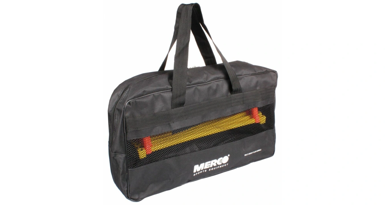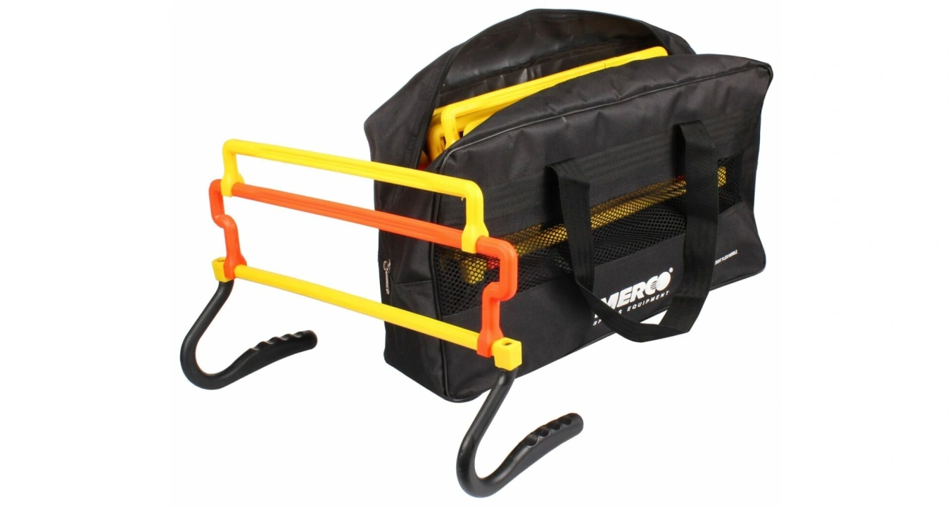 Sada šesti překážek z odolného a lehkého vysokohustotního polyetylenu Merco Universal v praktickém balení slouží k tréninku vertikální i horizontální síly a rychlosti nohou. 44 cm široká plastová překážka Merco Universal umožňuje individuální nastavení výšky na 15 cm, 25 cm a 30 cm, což uživateli přináší větší variabilitu a obtížnost kondičních tréninků. Celková hmotnost sady Merco Universal je 2,5 kg a lze ji používat v interiéru i exteriéru.