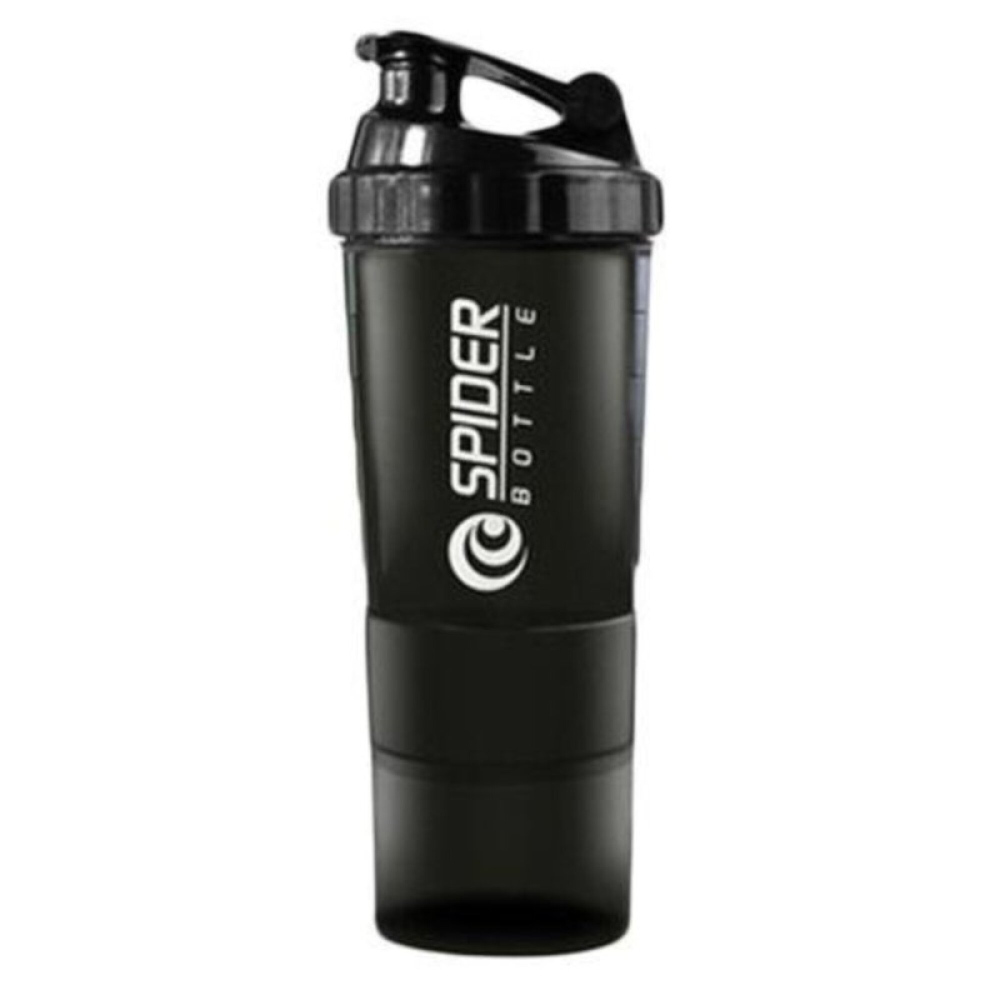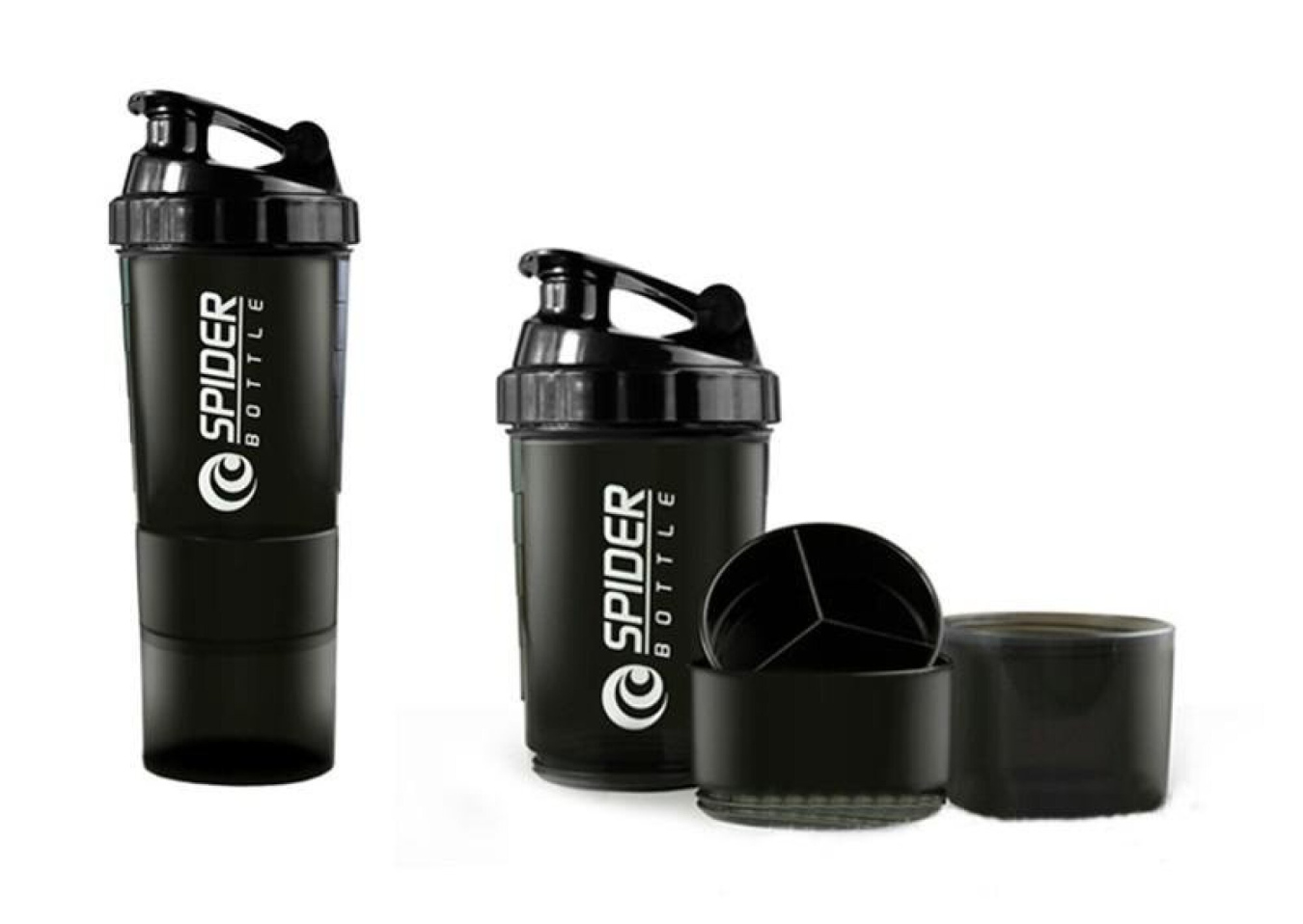 Je vícedílný šejkr o objemu 700 ml, který sestává ze tří dílů. První díl je určen pro míchání práškových doplňků výživy nebo tekutin, druhý poslouží na tablety a kapsle, a třetí na práškové suplementy. Šejkr obsahuje klasický závit a spirálu na dokonalé rozmíchávání vašich oblíbených proteinů, aminokyselin, předtréninkových stimulantů a kreatinu. Třídílný šejkr Spider Bottle je dostupný hned v několika barevných kombinacích, ze kterých si určitě vyberete tu svou oblíbenou.