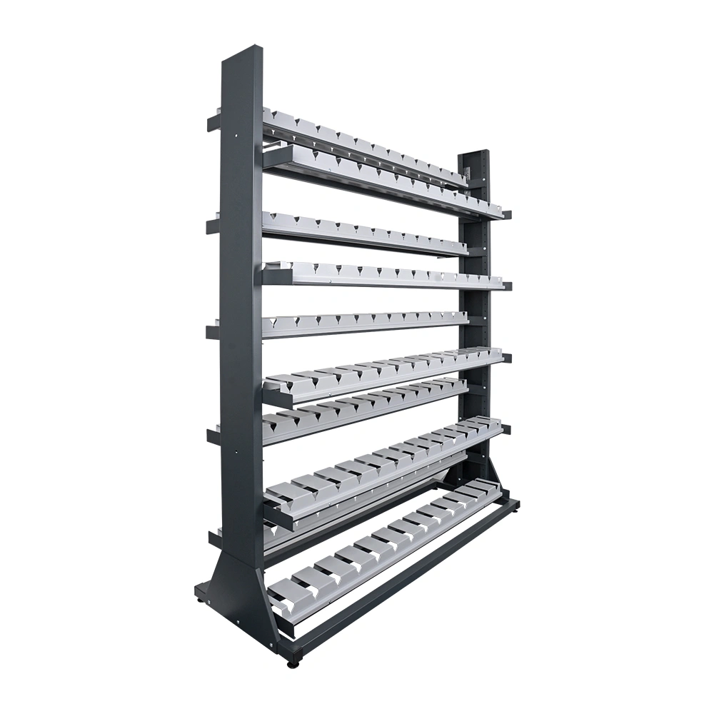 Regál je oboustranný a je vybaven nastavitelnými nožkami, případně pojezdovými kolečky nebo kolečky pro instalaci na kolejnici v případě instalací více regálů do jedné prostory.